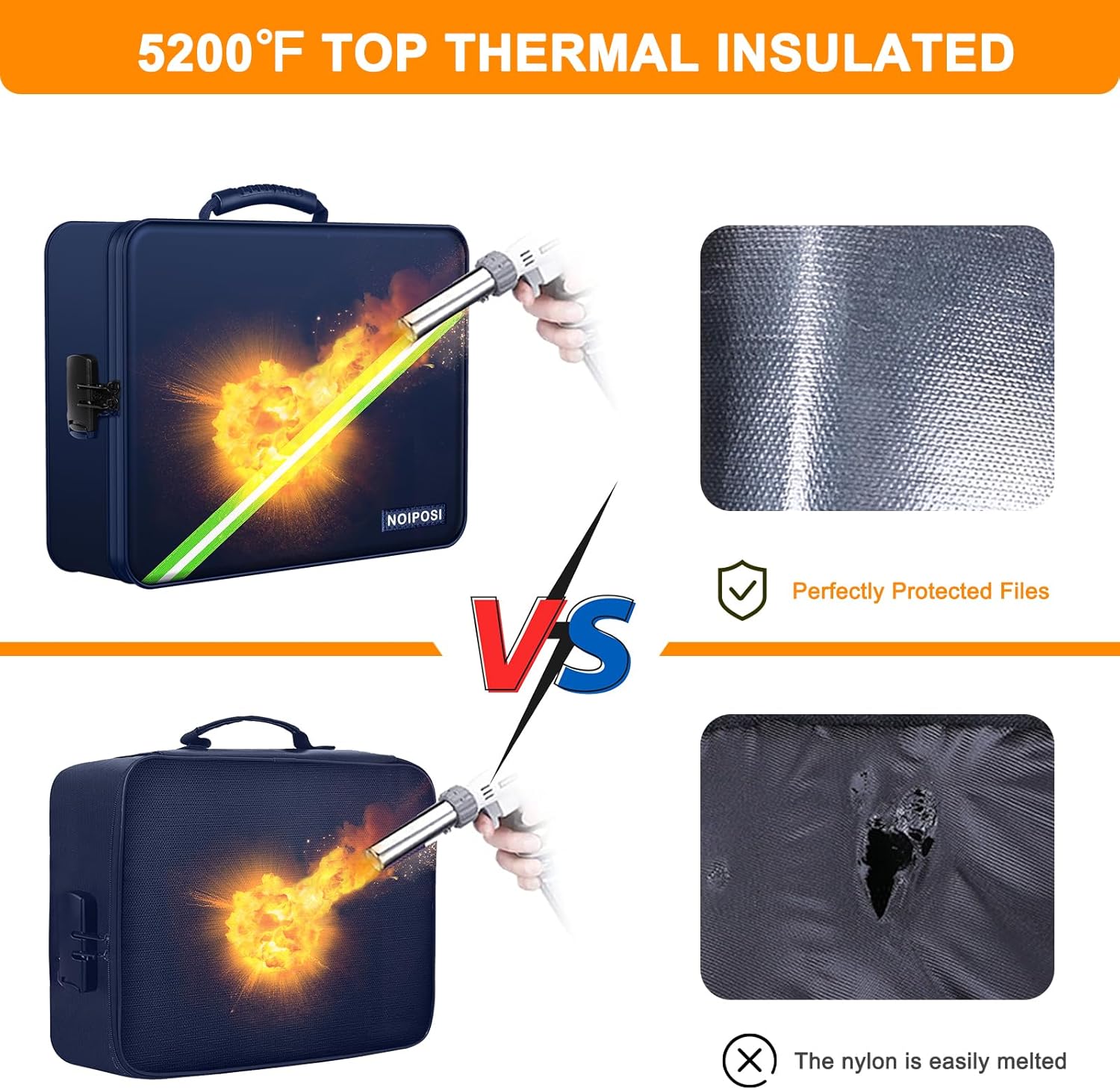 - 5200℉ TOP FIRE PROTECTION::important document organizer is made of silicone fiberglass ,Insulated cotton and Aluminum Foil which withstands high temperature up to 5200℉ .Important document storage adopts a 8-layer function material structure of fire protection and heat insulated to help the heat blocking from your valuables . It will give enough time to save your valuables from fire .Fire box safe for documents is highly recommended by firefighters in the most demanding environments