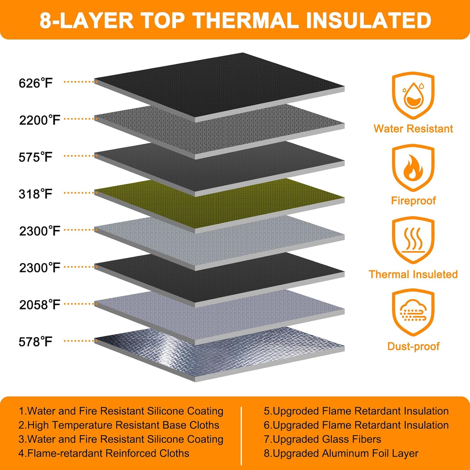 - 5200℉ TOP FIRE PROTECTION::important document organizer is made of silicone fiberglass ,Insulated cotton and Aluminum Foil which withstands high temperature up to 5200℉ .Important document storage adopts a 8-layer function material structure of fire protection and heat insulated to help the heat blocking from your valuables . It will give enough time to save your valuables from fire .Fire box safe for documents is highly recommended by firefighters in the most demanding environments