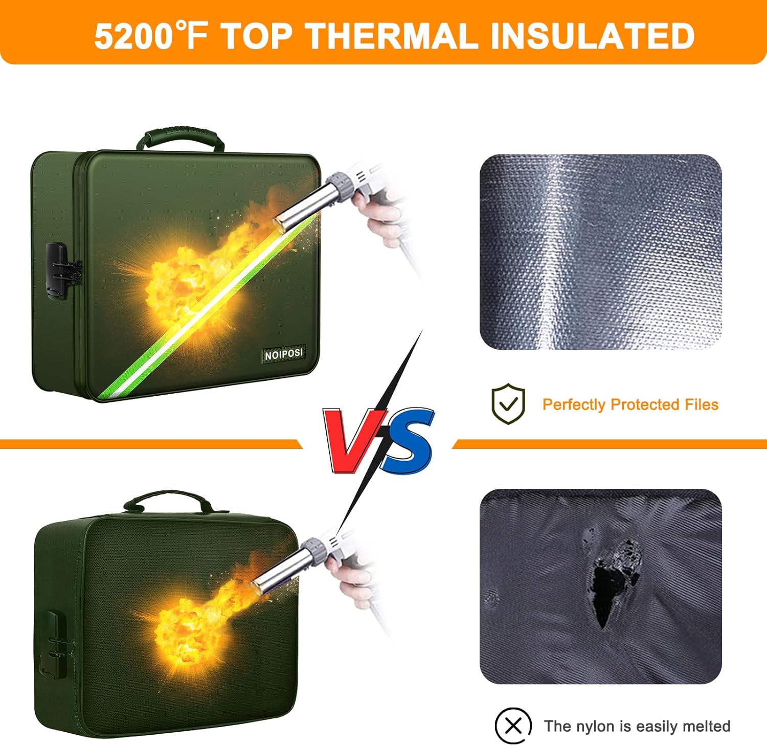 - 5200℉ TOP FIRE PROTECTION::important document organizer is made of silicone fiberglass ,Insulated cotton and Aluminum Foil which withstands high temperature up to 5200℉ .Important document storage adopts a 8-layer function material structure of fire protection and heat insulated to help the heat blocking from your valuables . It will give enough time to save your valuables from fire .Fire box safe for documents is highly recommended by firefighters in the most demanding environments