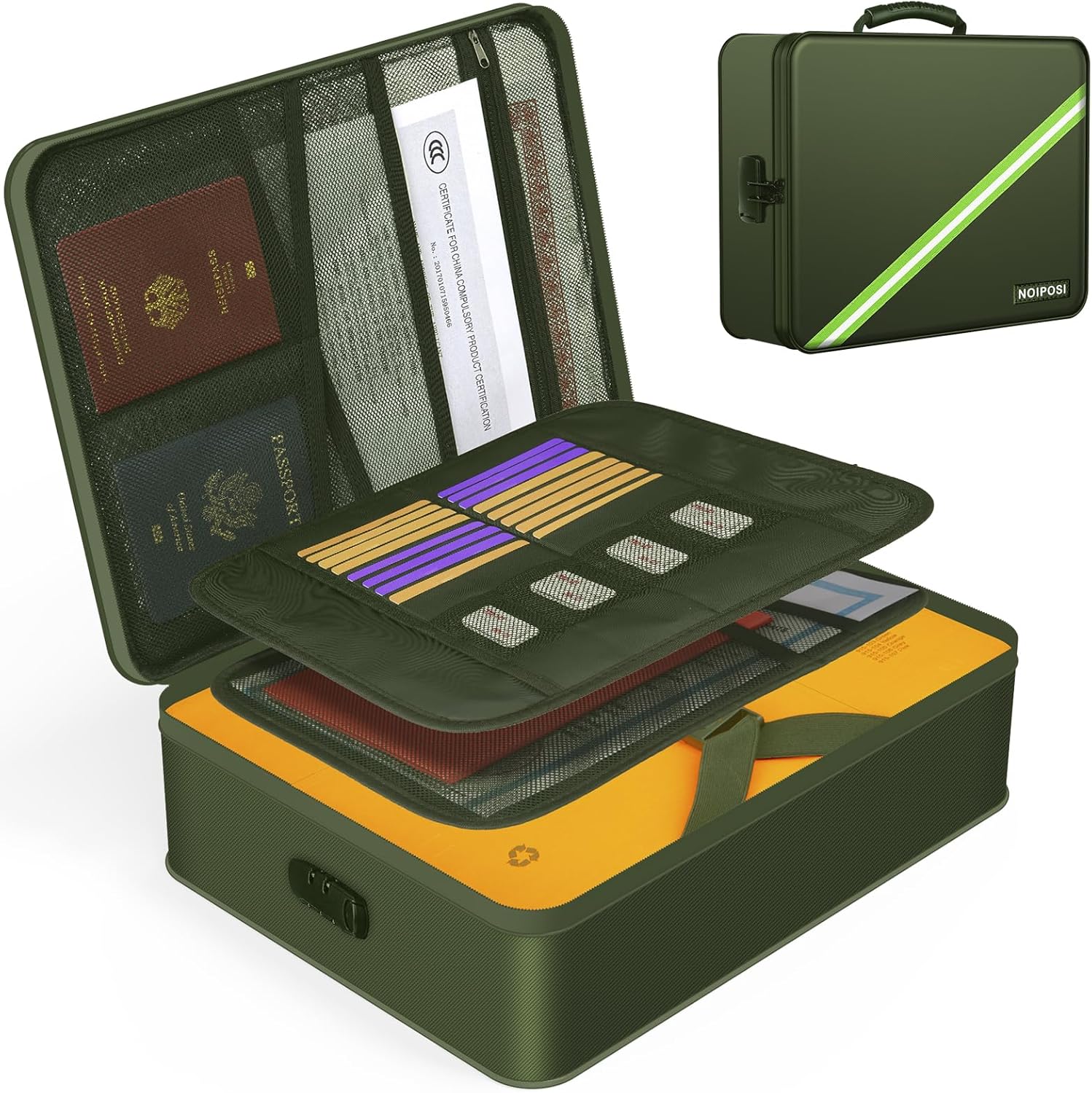 Document Organizer with 5200℉ Heat Insulated, 16.1"x11.4"x4.3" Waterproof and Fireproof Document Box with Lock, Home Strong Fireproof Safe Storage Box for Legal Size Documents and File,Green