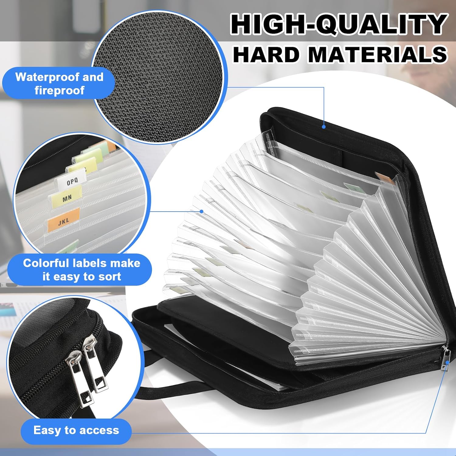 Henoyso 2 Pcs File Organizer Expanding Folder 13 Pockets Fireproof &Waterproof, Organize Receipts,Bills&Important Document Bag with Handle and Zipper Labels for Letter A4 Files,Home Office & School