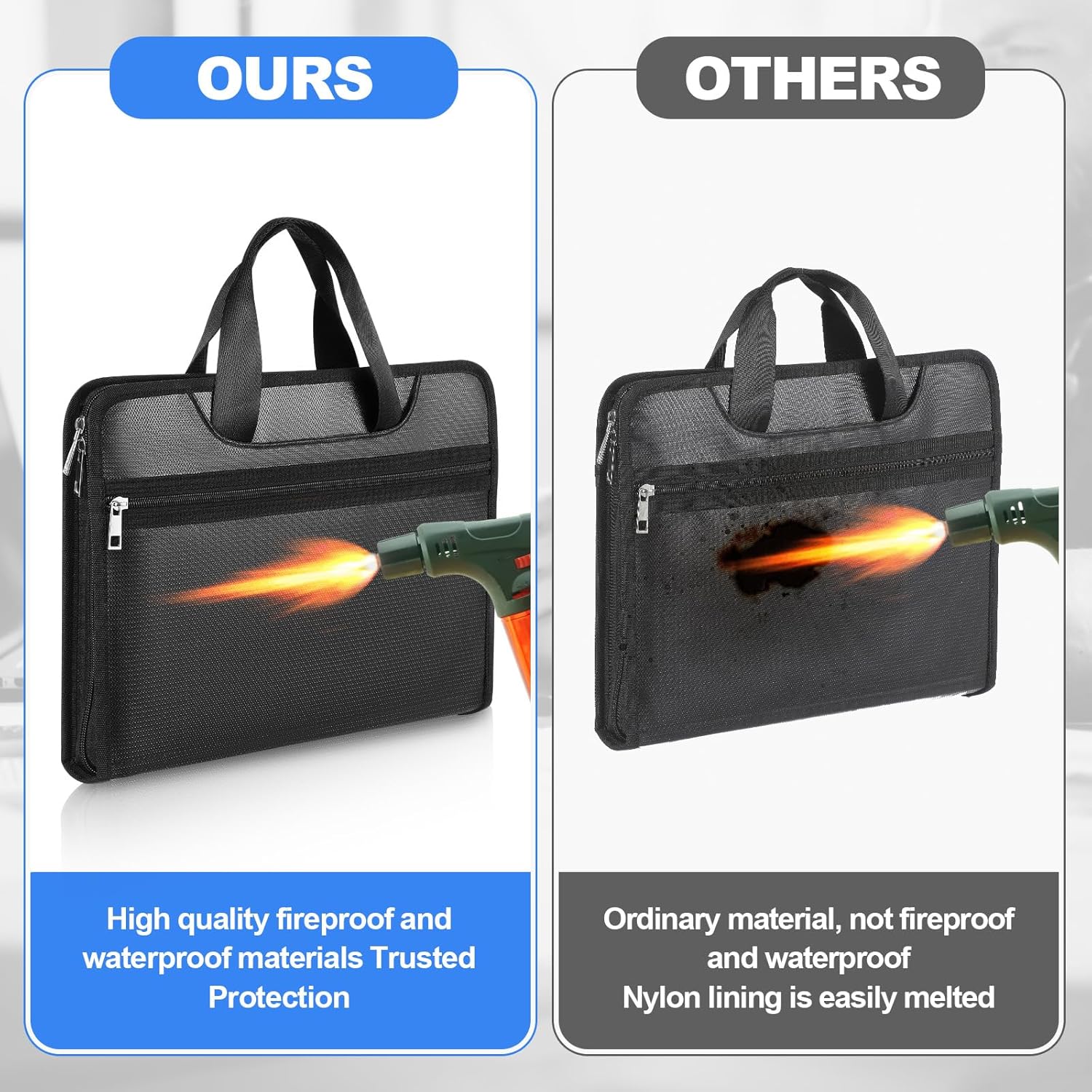 - Extra Protection for Valuable Documents: the primary function of this fireproof waterproof document bag is to provide increased security for your crucial documents; Apart from securing your files from fire damage, it provides an added safety layer against accidental water spills, thus lengthening the shelf life of your essential documents, giving you peace of mind knowing your documents are well kept regardless of potential environmental hazards