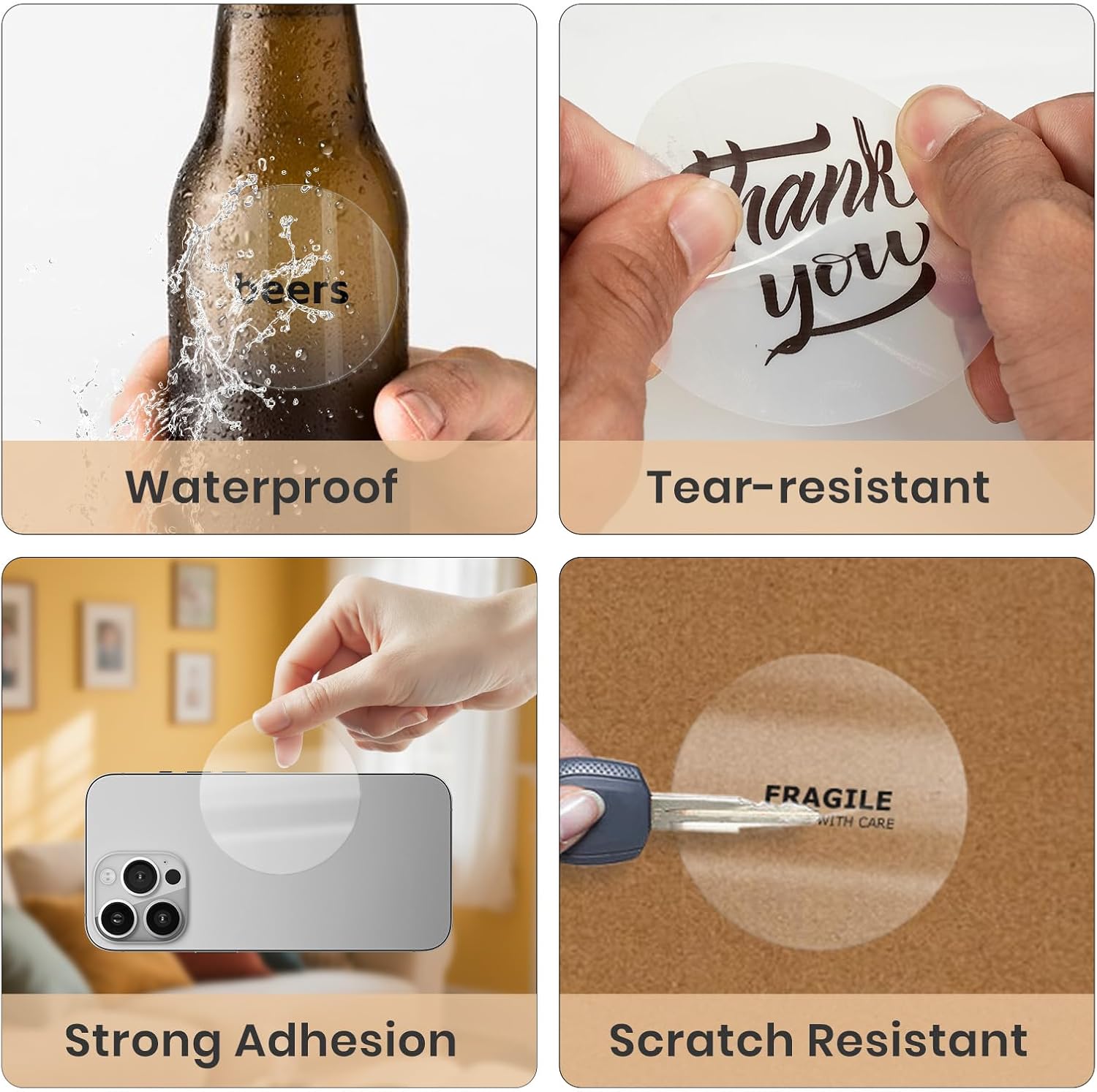 - Personalized: You can create custom business logo, thank you stickers, gift tag stickers or print QR codes, barcodes, name tags, address on products. Printable labels can also be easily written on the surface with a marker pen.