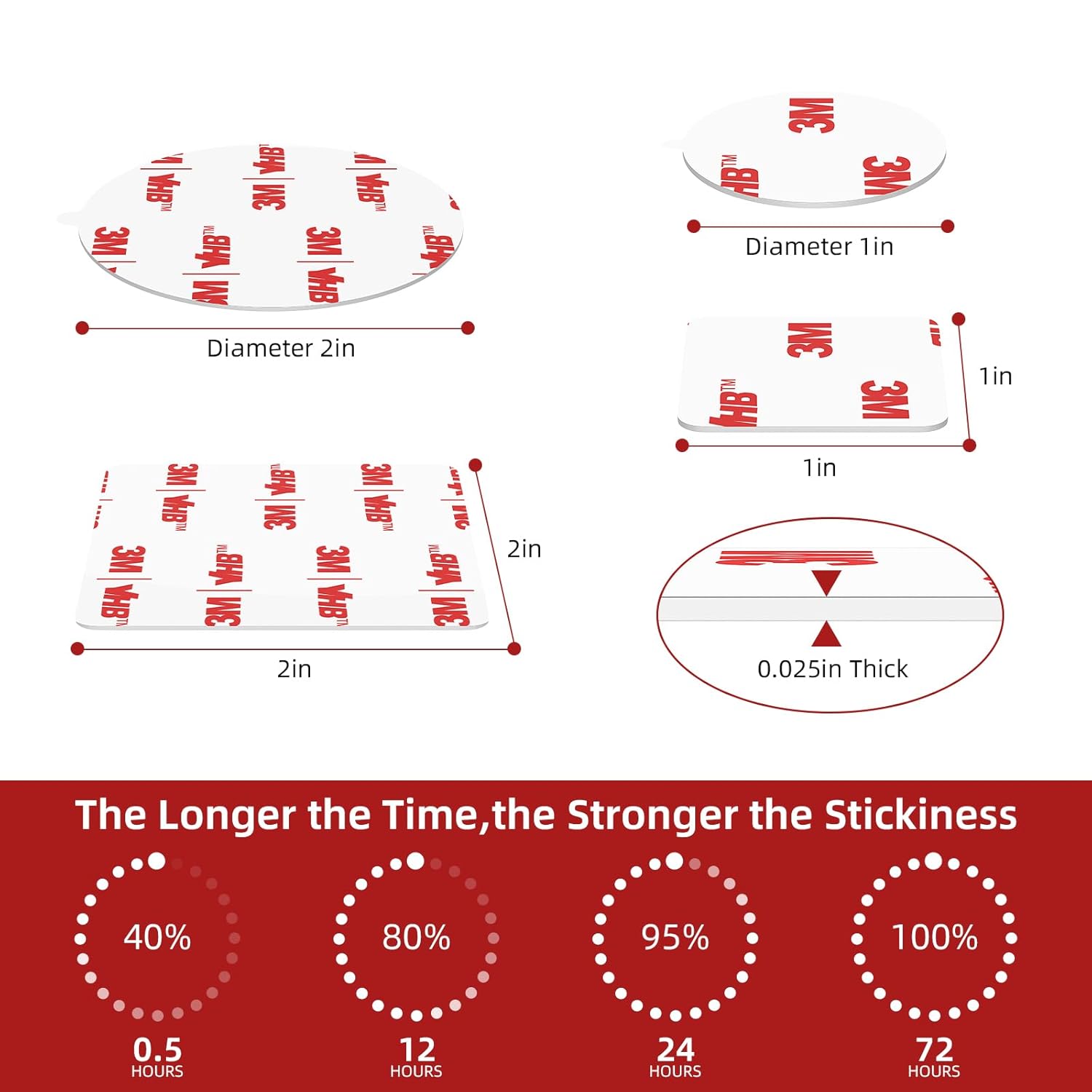 - FLEXIBLE SIZES & COLORS: Double-sided adhesive pads come in Black, White, and Transparent, with sizes including 1-inch and 2-inch circles and squares, available in packs of 20 and 40. These pads offer versatile options to suit most needs and can be cut to the required shape for precise application.