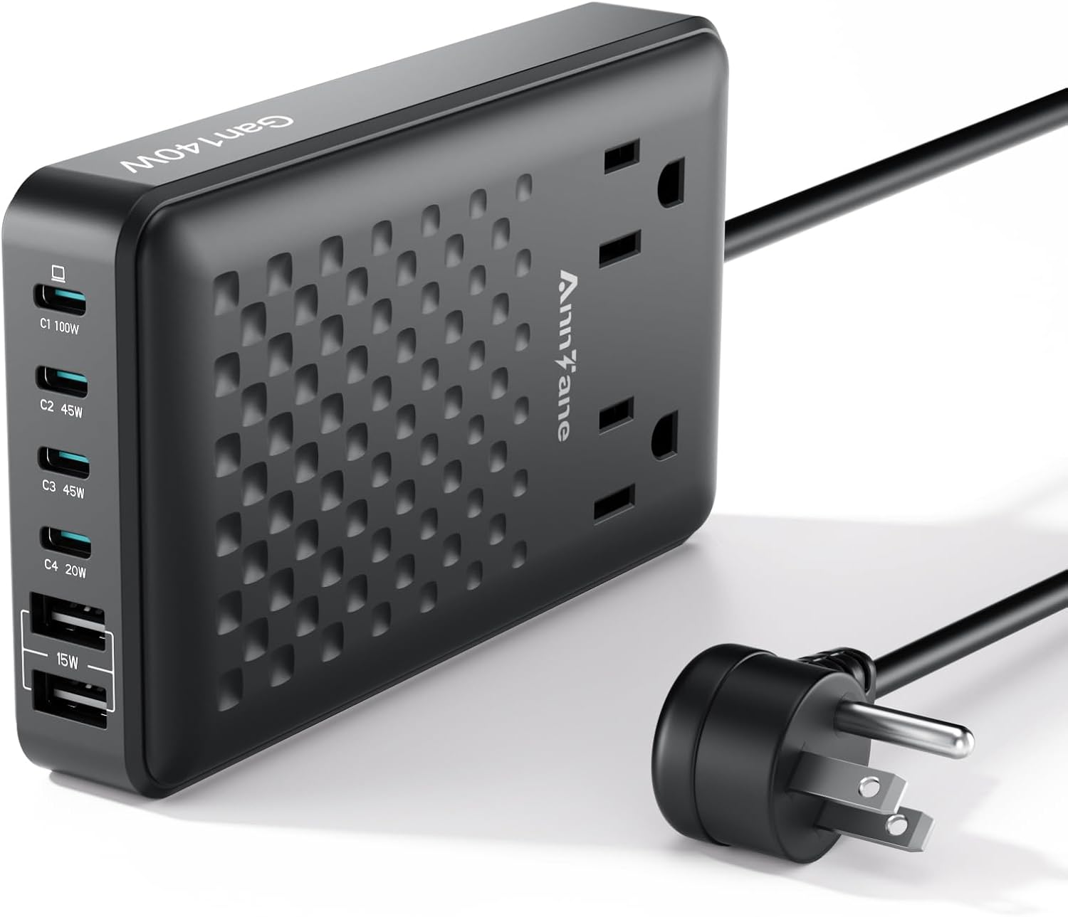 - 【140W latest GaN III Charging technology】Newly designed USB charger, total power 140W, multi-port, using 2025 GaN III charging technology, providing higher energy efficiency, anti-radiation ability and upgraded heat dissipation, higher safety rate, more stable power supply, protect charging equipment.