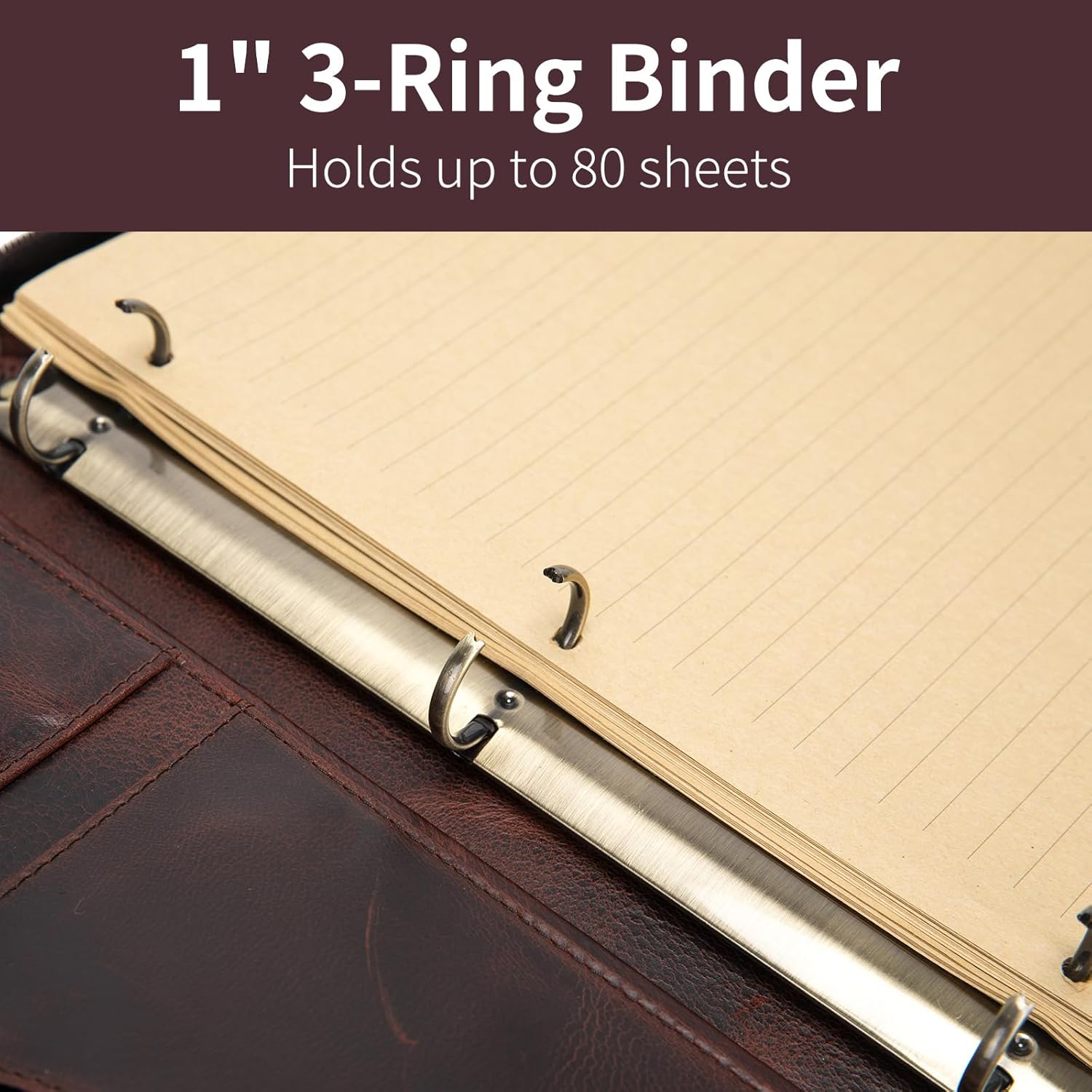- 3-Ring Binder: Equipped with a robust 3-ring binder mechanism, this leather portfolio ensures secure storage and easy organization of your documents. Perfect for professionals on the go, it accommodates standard-sized sheets and is ideal for meetings, presentations, and everyday use. Enjoy the convenience of flipping through pages effortlessly while maintaining a polished, organized appearance.