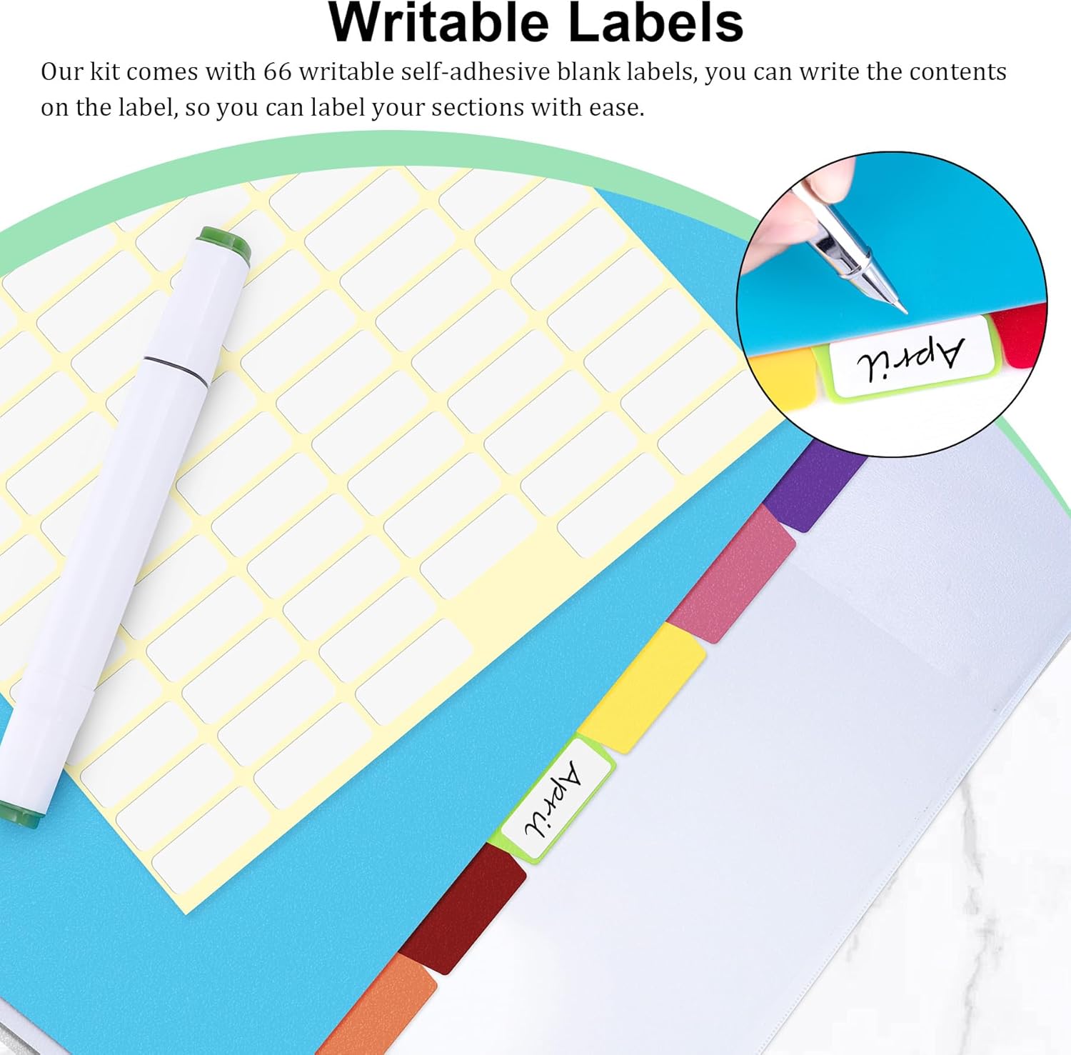 - Each plastic divider features a tab with a writable surface, you can write directly, or you can use our self-adhesive labels and write the contents on the label, so you can label your sections with ease