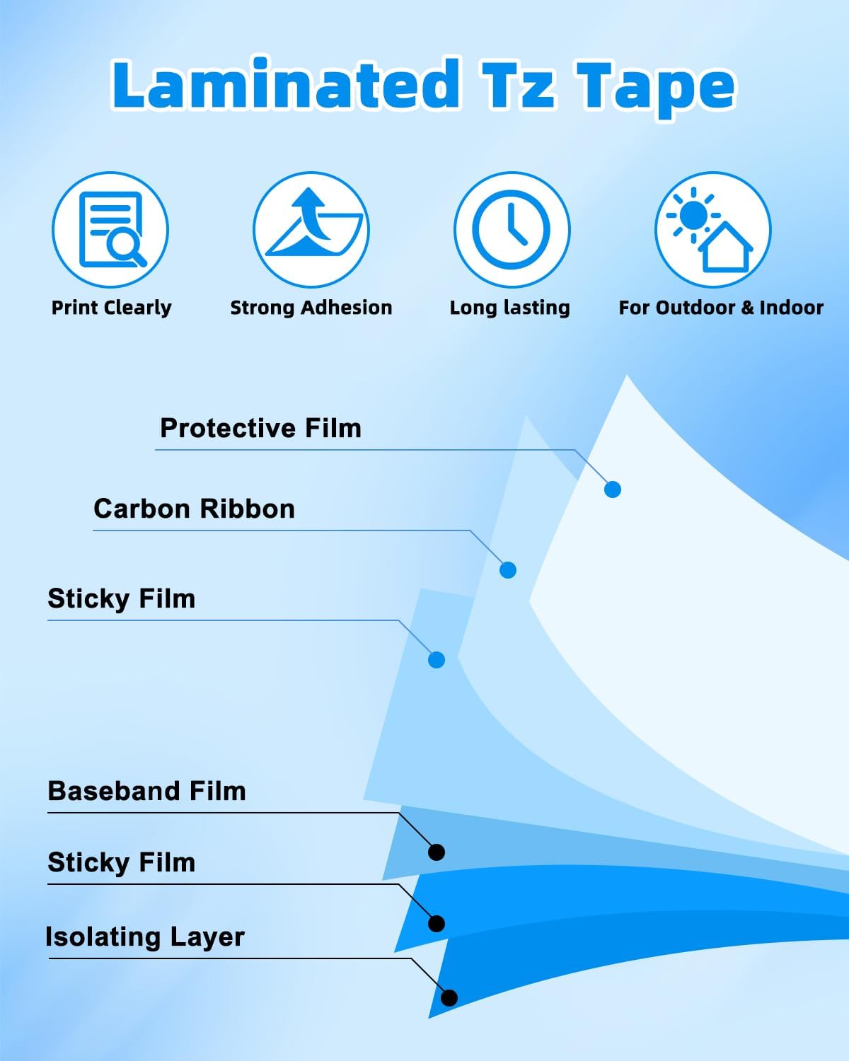 - Laminated for Durable Features: BAALAND 12 mm 0.47 laminated white tz tape is laminated design for strong durability and longevity, withstands water, fade, sunlight and high/low temperature from-22° (-30°C) To 258° (120°C), so it is durable for use outdoor or indoor
