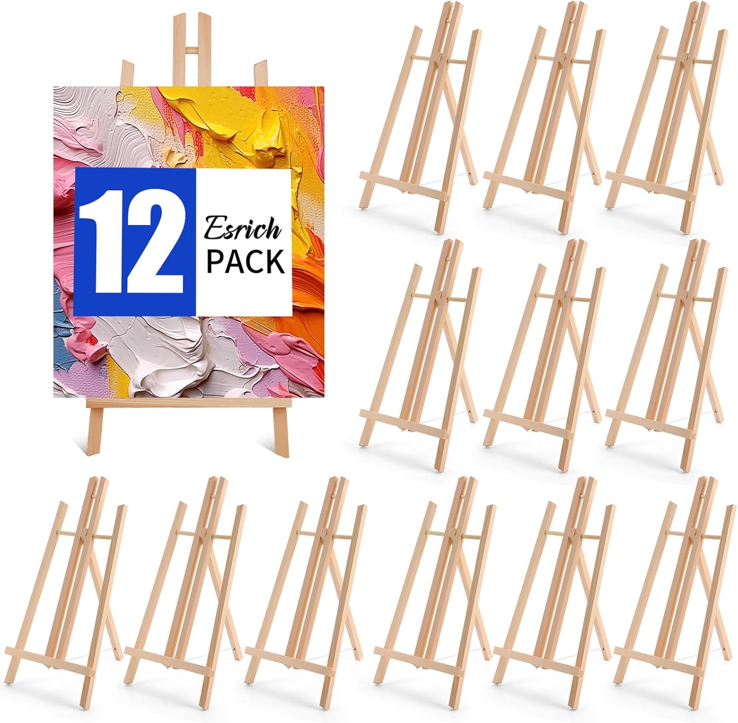 ESRICH 12Pack16in Tabletop Easel,Tabletop Easel for Painting Party, Wooden Tabletop Display Easels,Painting Easel for Displaying Canvases, Photos, Display Tripod Holder Stand for Students Kids