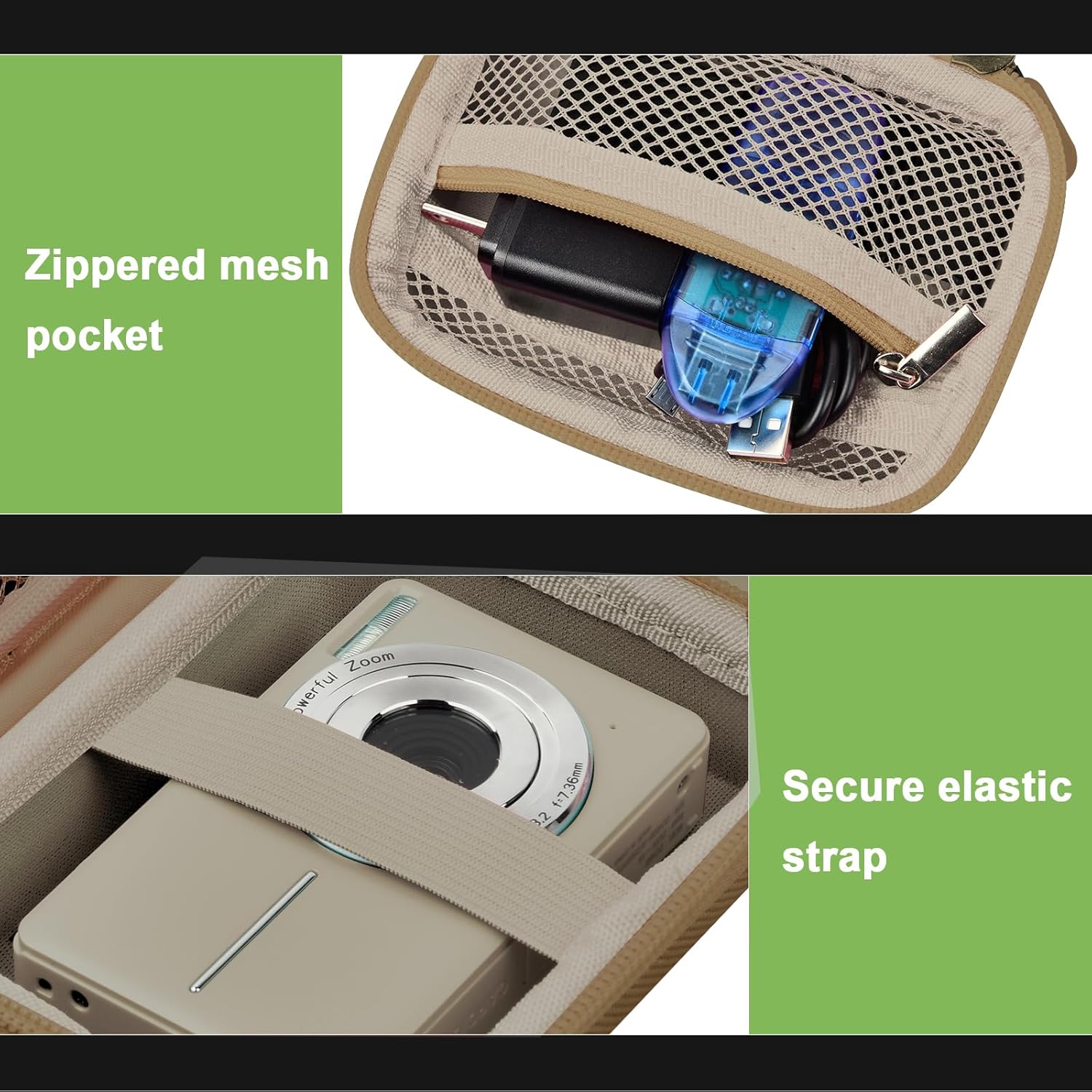 - Spacious zippered mesh pocket- Utilize the practical zippered mesh pocket to store various video camera accessories like chargers, batteries, SD cards, SD Card Reader and data cables. Stay organized, keeping all kids digital camera essentials within easy reach.