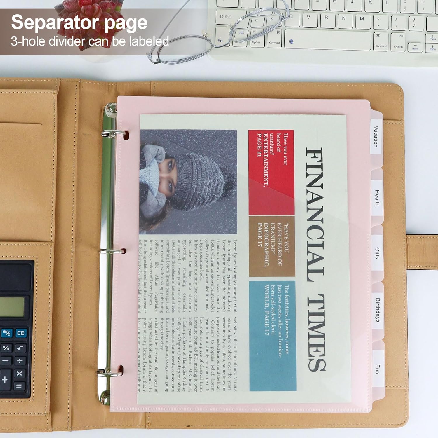 - 【Fits 3 RIng Binders】3 Holes punched, fit in 3 ring binders. Our Plastic Pocket Dividers are measured 9.3 X 11.2 inches, providing the maximum coverage for your letter-sized paper. There are a total of 5 dividers for 3 ring binder with pockets in the package.