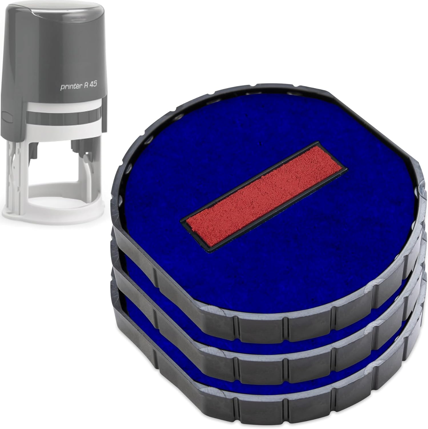 COLOP E/R45 Non-Toxic, Water Based Premium Replacement Pad for Printer R45 Stamp - Pack of 3 - Blue & Red (2 Colors)