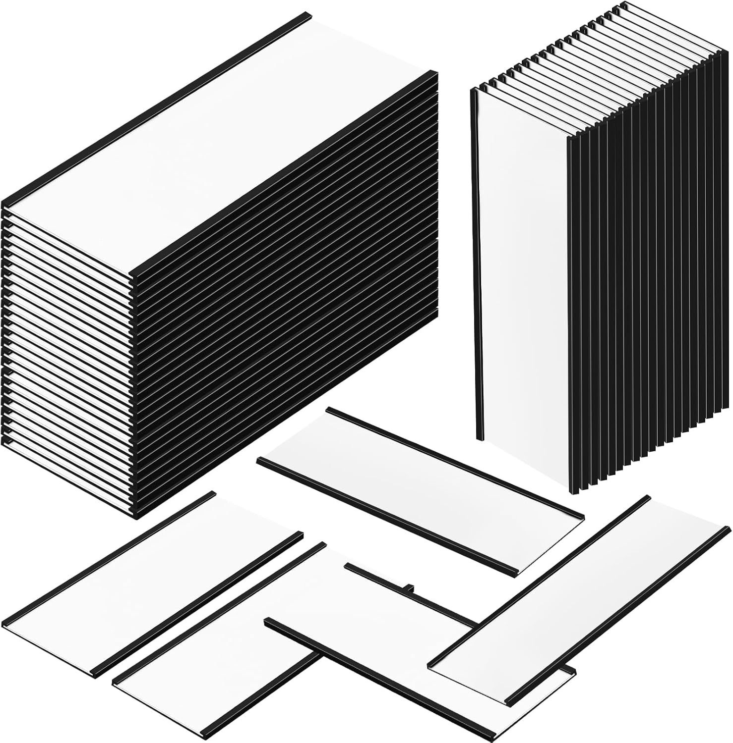 50 Pcs 6" x 2" Magnetic C Channel Label Holders with Replacement White Paper and Clear Plastic Films, Magnetic Cards Name Tags for Rack Shelf Warehouse Labels Accessories