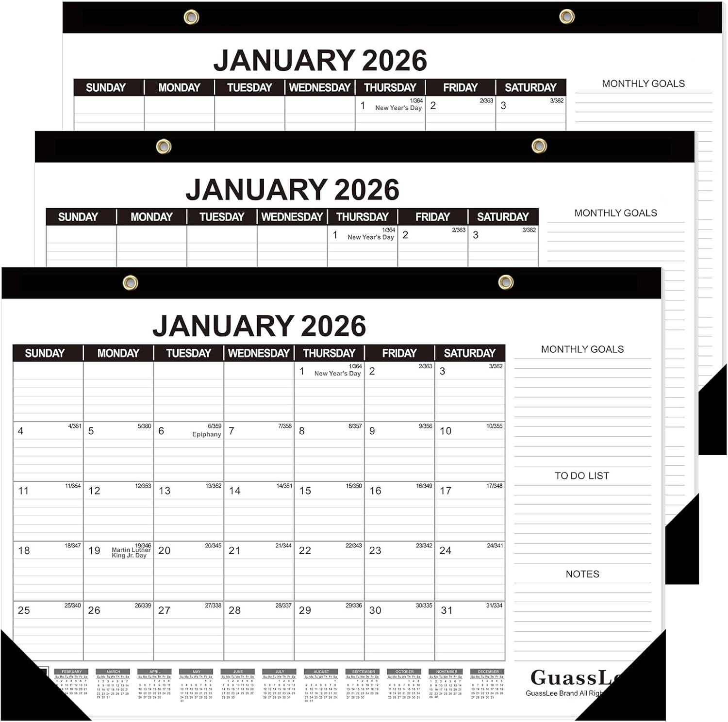 GuassLee Desk Calendar 2026-2027, 3 Packs, 18 Months Calendar 17" × 11.5" Desk Calendar from January. 2026 to June. 2027 with Julian Date, To-do List, Notes, Monthly Goals, for Home School Office