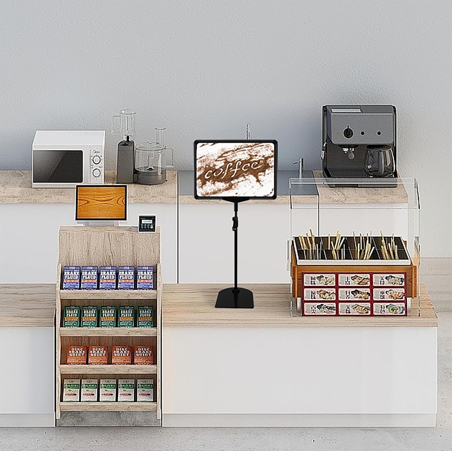 - Easy set up and store:This sign stand for display holds an 8.5" x 11" paper, card stock, ect. Just several minutes to set up sign holders for table top.Adjustable in height, these stands allow you to position signs at different levels.