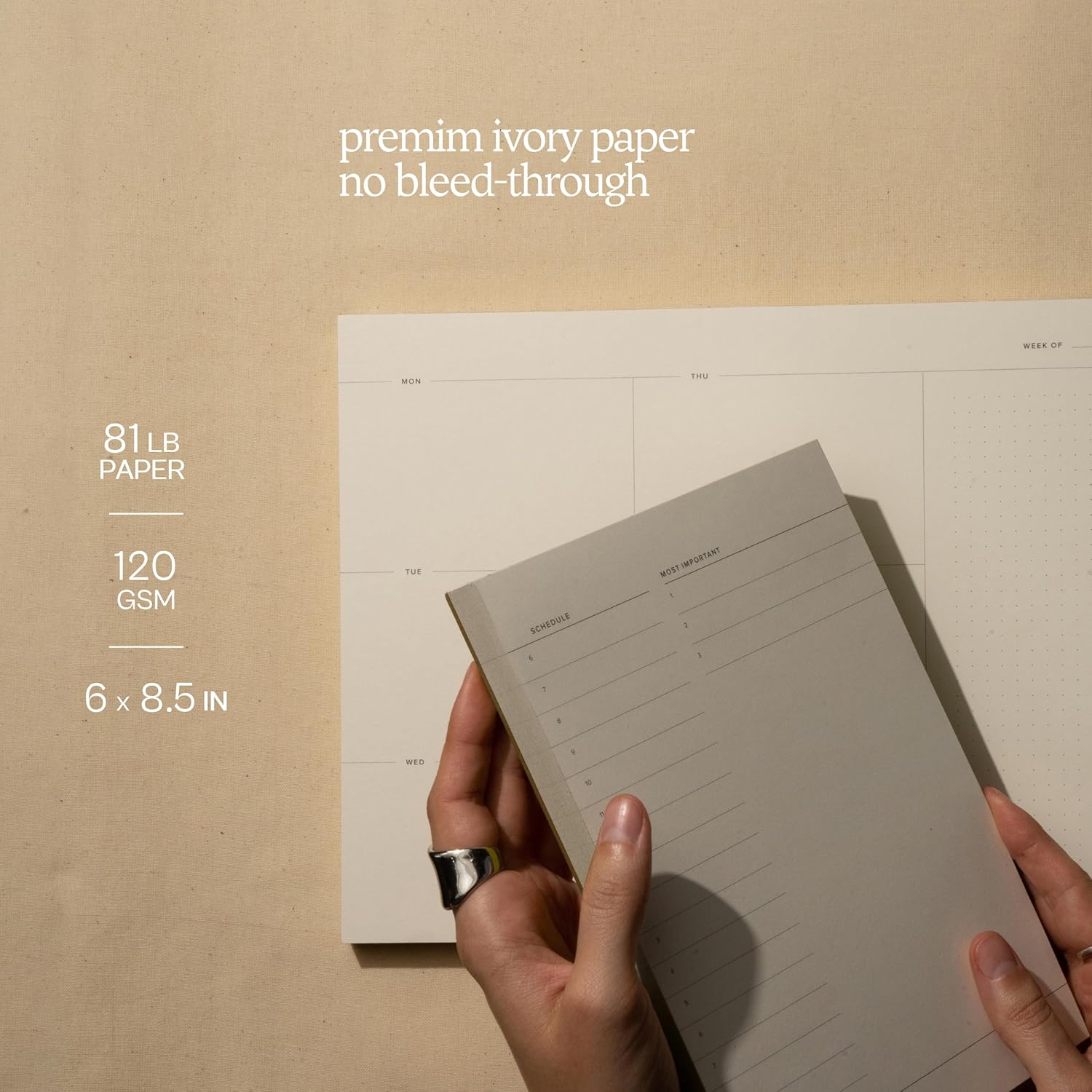 - Thick Ivory Paper: 81lb (same as 120gsm); it makes for a wonderful writing experience