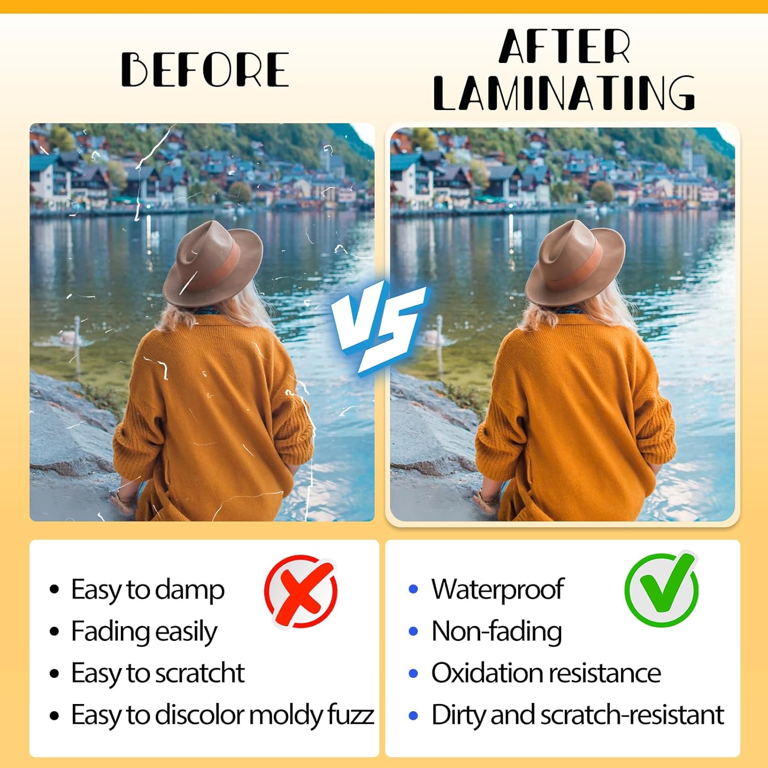 - Excellent Clarity:The laminating sheets only use high-quality adhesive for best transparency to ensure that the photos and documents are clearly visible let important information show through! Round corner design, safe to use