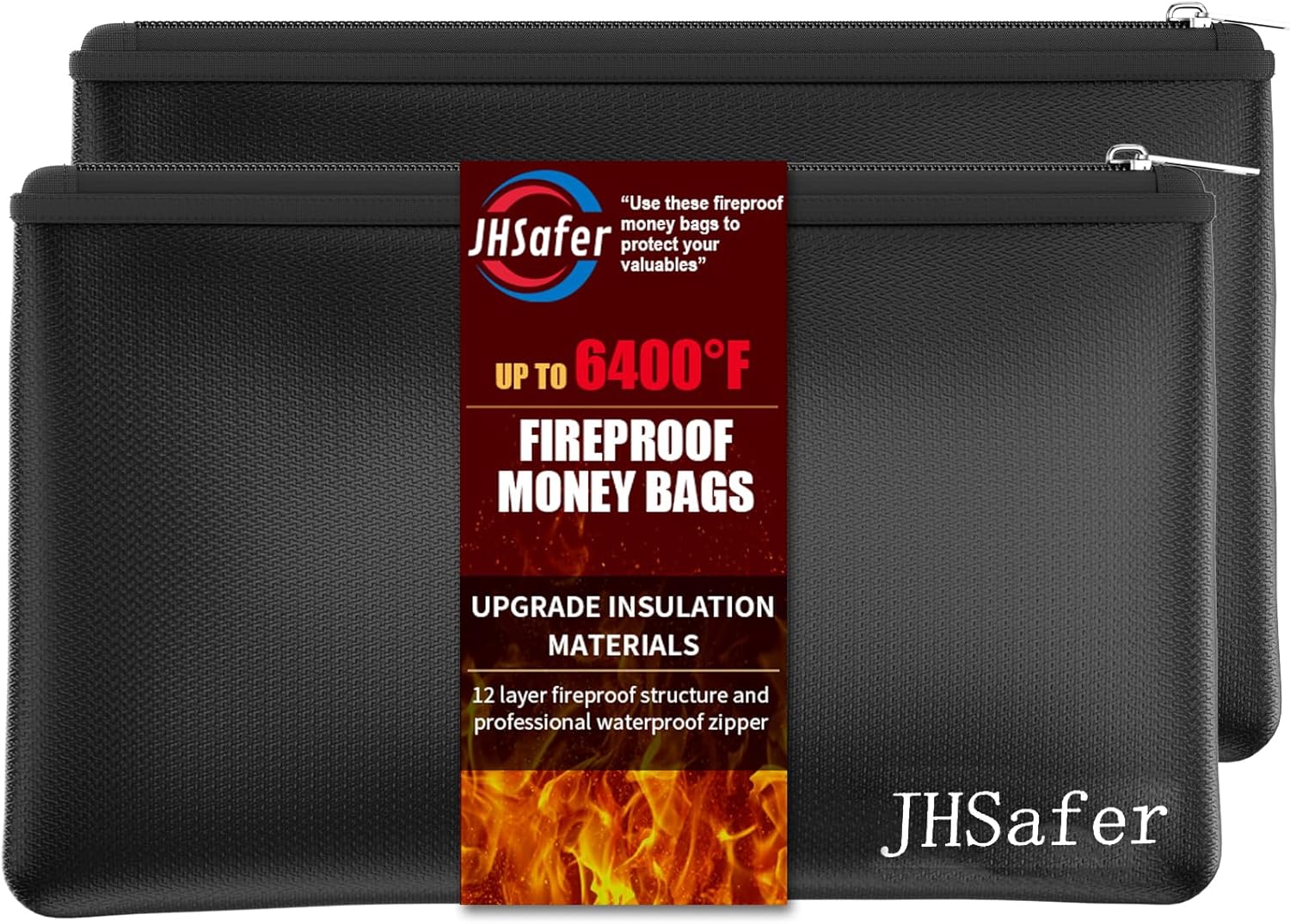 - Convenient to carry: The set comes with 2 fireproof money bags,you can use both for yourself, or choose one money bag as a gift for your family or friends;Each fireproof money bag for cash measuring 11''x6.3'', not too big and not too small;The fireproof document bags perfect for carrying your cash, passport, credit cards, keys, jewelry and more