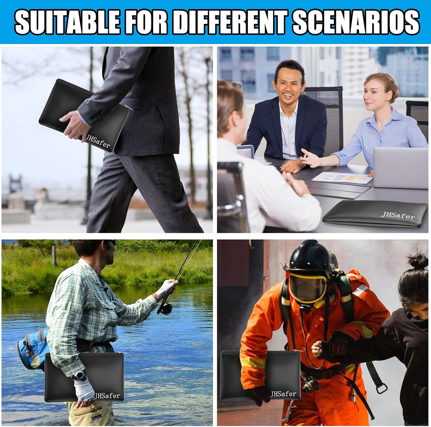 - Simple and low-profile design: Compared with the complex design of fireproof cash bags on the market, the all-black fireproof wallet with a small white logo is more suitable for your daily business office. Our fireproof safe bag is a convenient alternative to other fireproof safe box,fireproof document box