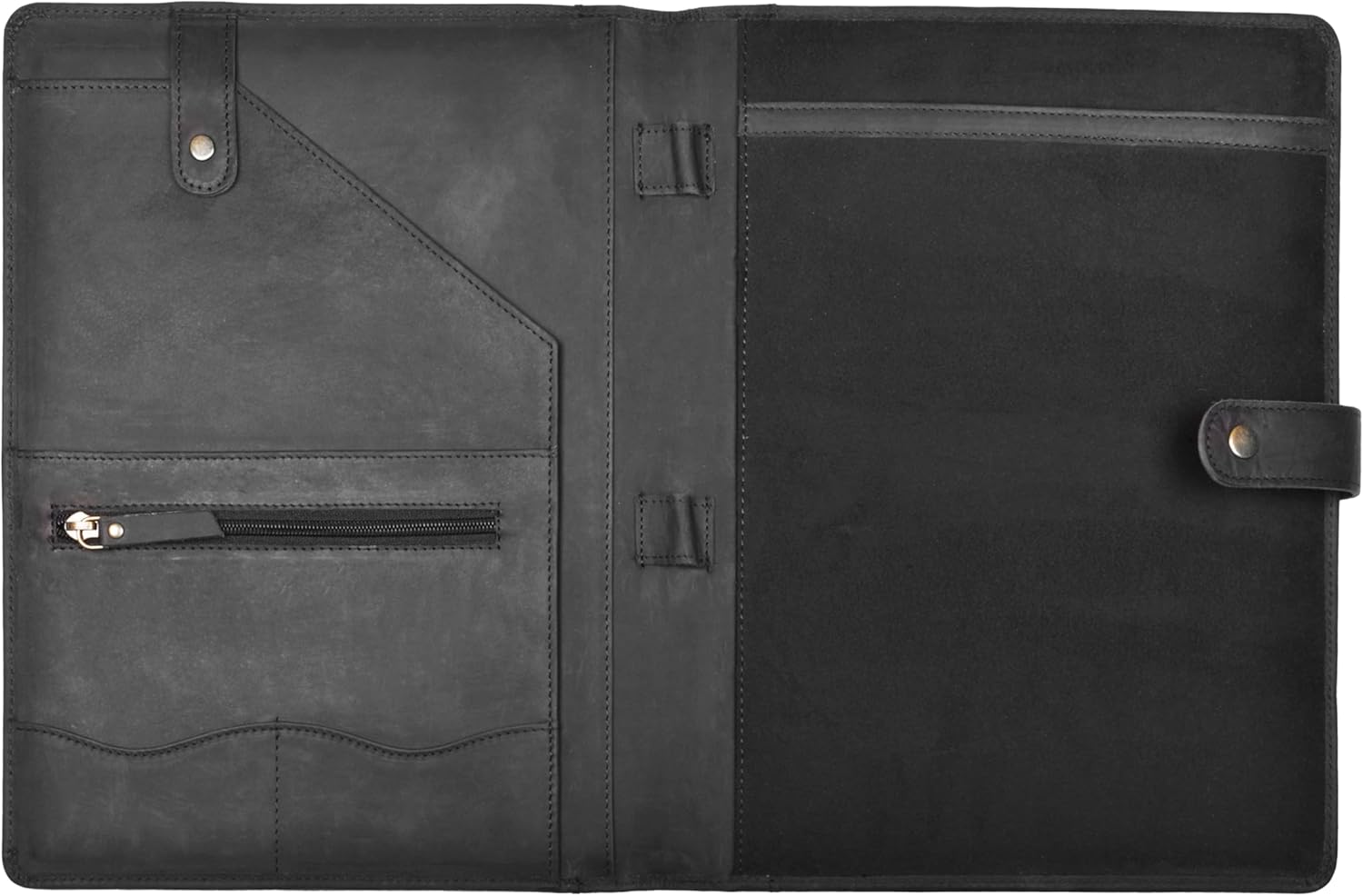 - Unique Full Grain Leather: Crafted from soft and supple black genuine buffalo leather, each padfolio is handmade and unique, ensuring no two are ever the same. The natural distressing and tanning process give it a vintage look that ages beautifully.