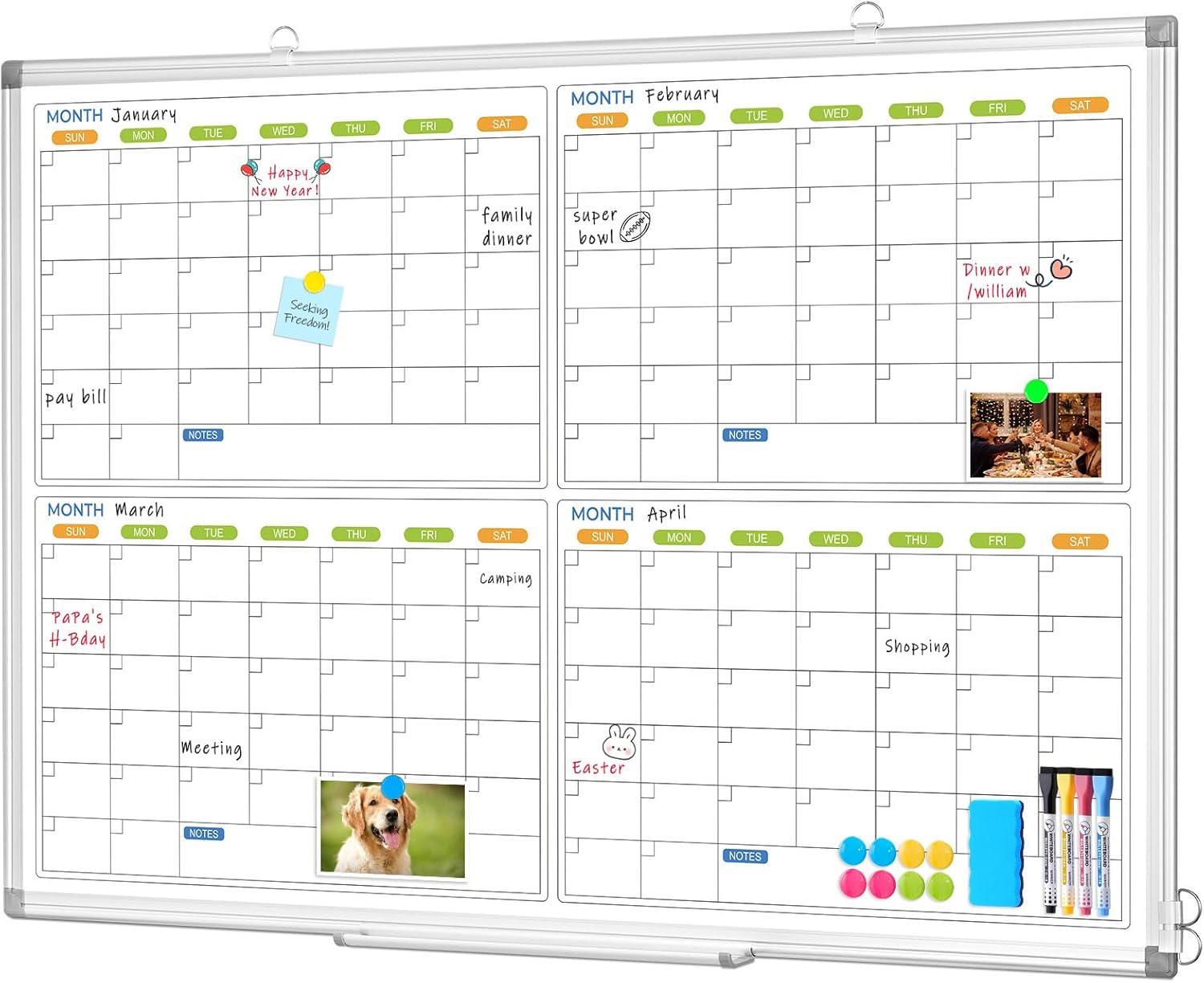 - 【4 Month Calendar Whiteboard】The 4 months dry erase calendar lets you easily plan ahead the next quarter's work, study, or goal-oriented projects in advance. Keep everything organized, visualized, and easy to track. Double-sided dry erase board features one side as a calendar and the other as a blank whiteboard, offering double the writing space for your daily to-do lists, weekly tasks, monthly plans, and reminders.