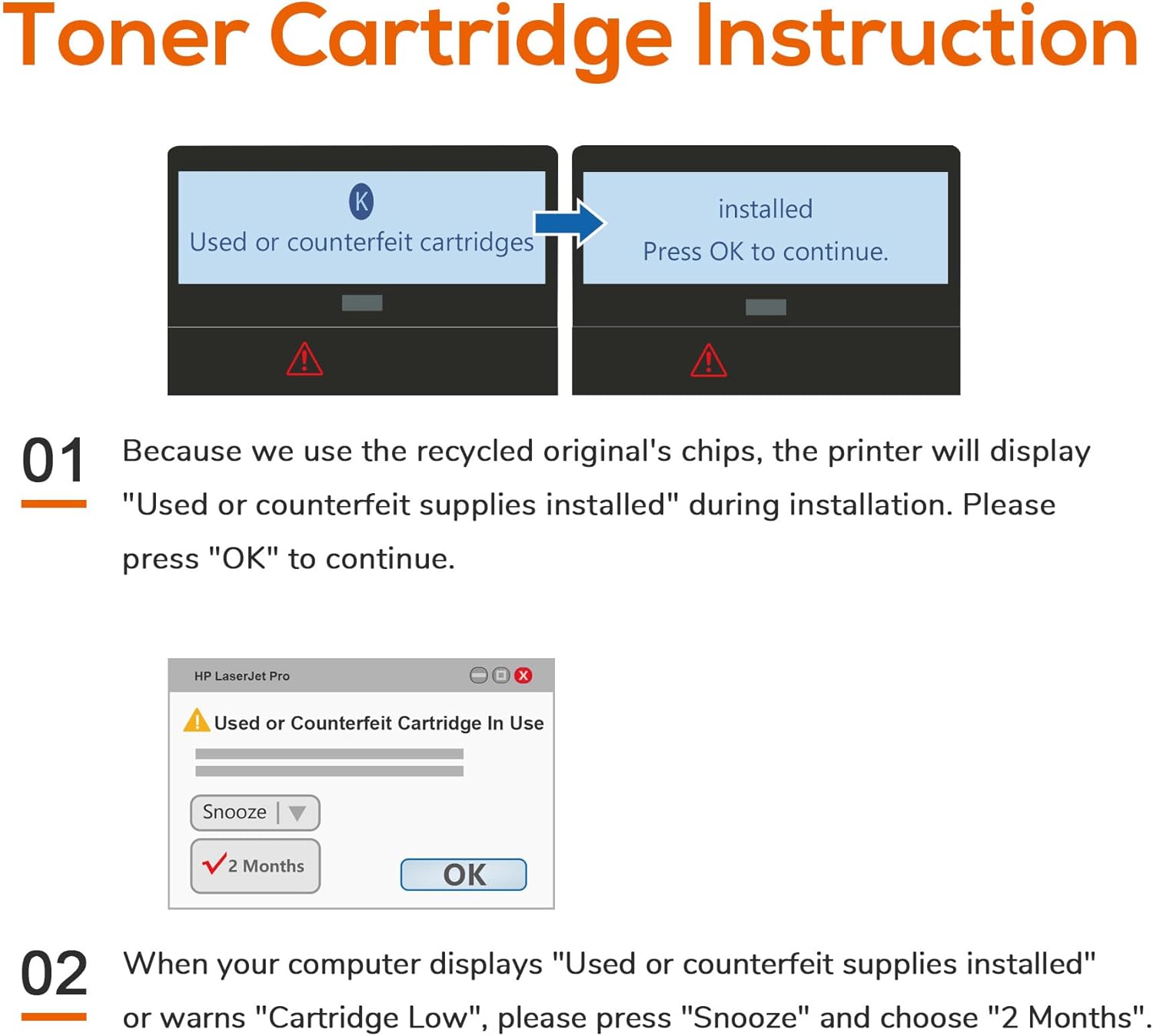 - Our CF258a toner cartridge include the original recycling chip, so there's no need for manual chip transfer. Get stable print quality and better toner efficiency right away.