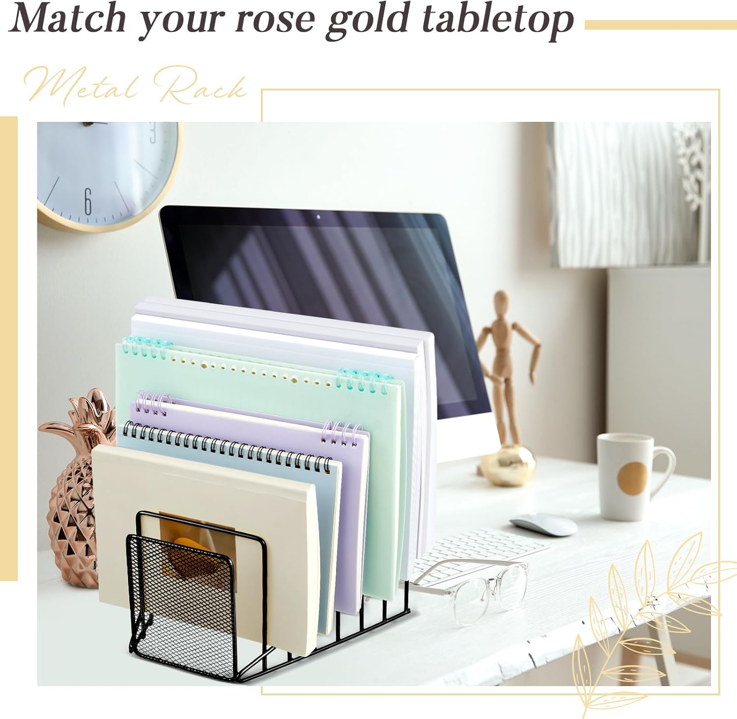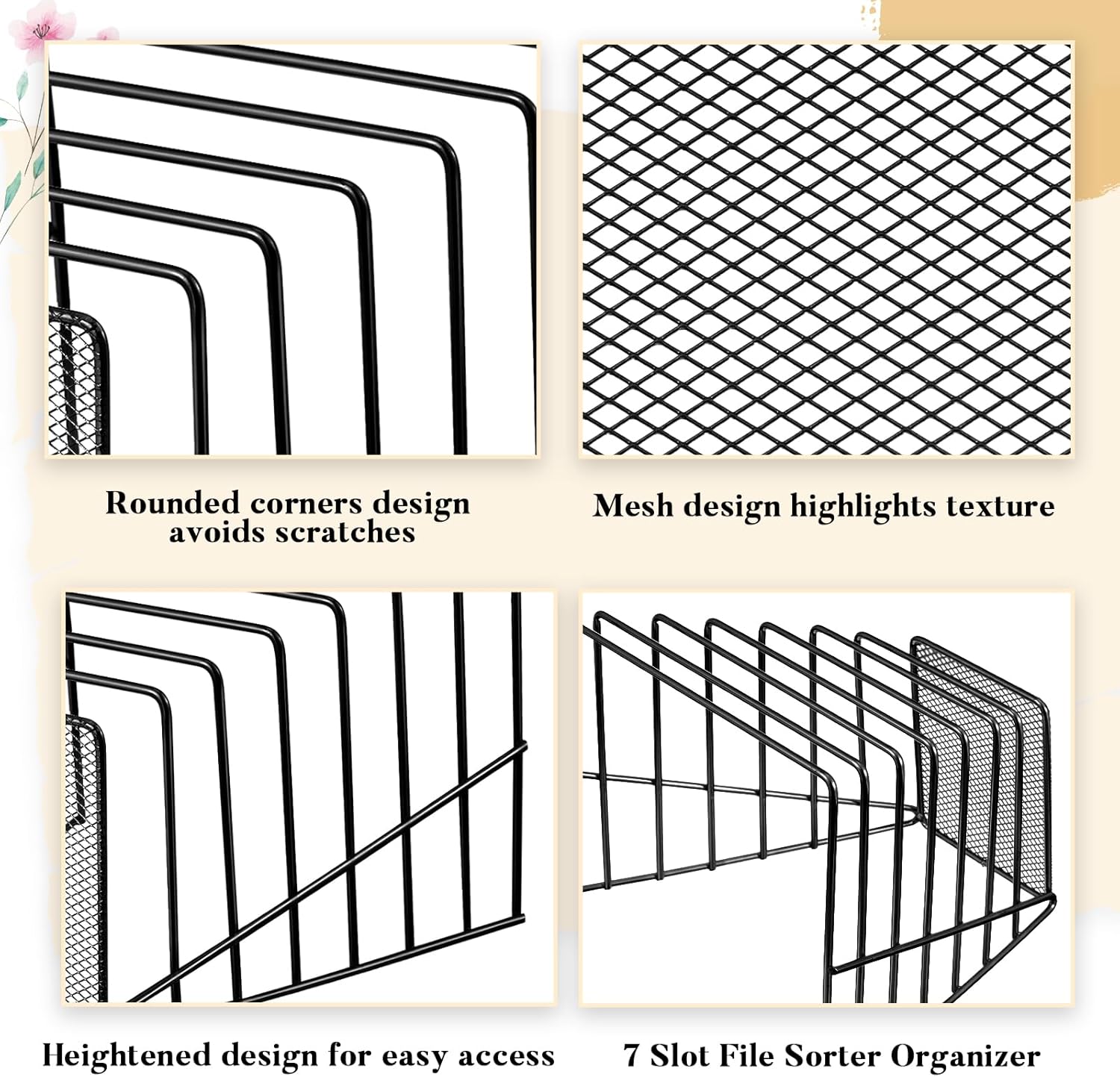 2 Pcs 7 Slot Incline File Sorter Metal Wire Mesh File Racks for Desktop Letter Sorter for Magazine Folder Book Organizer Home Office School Paper Mail Desk Storage Holder (Black)