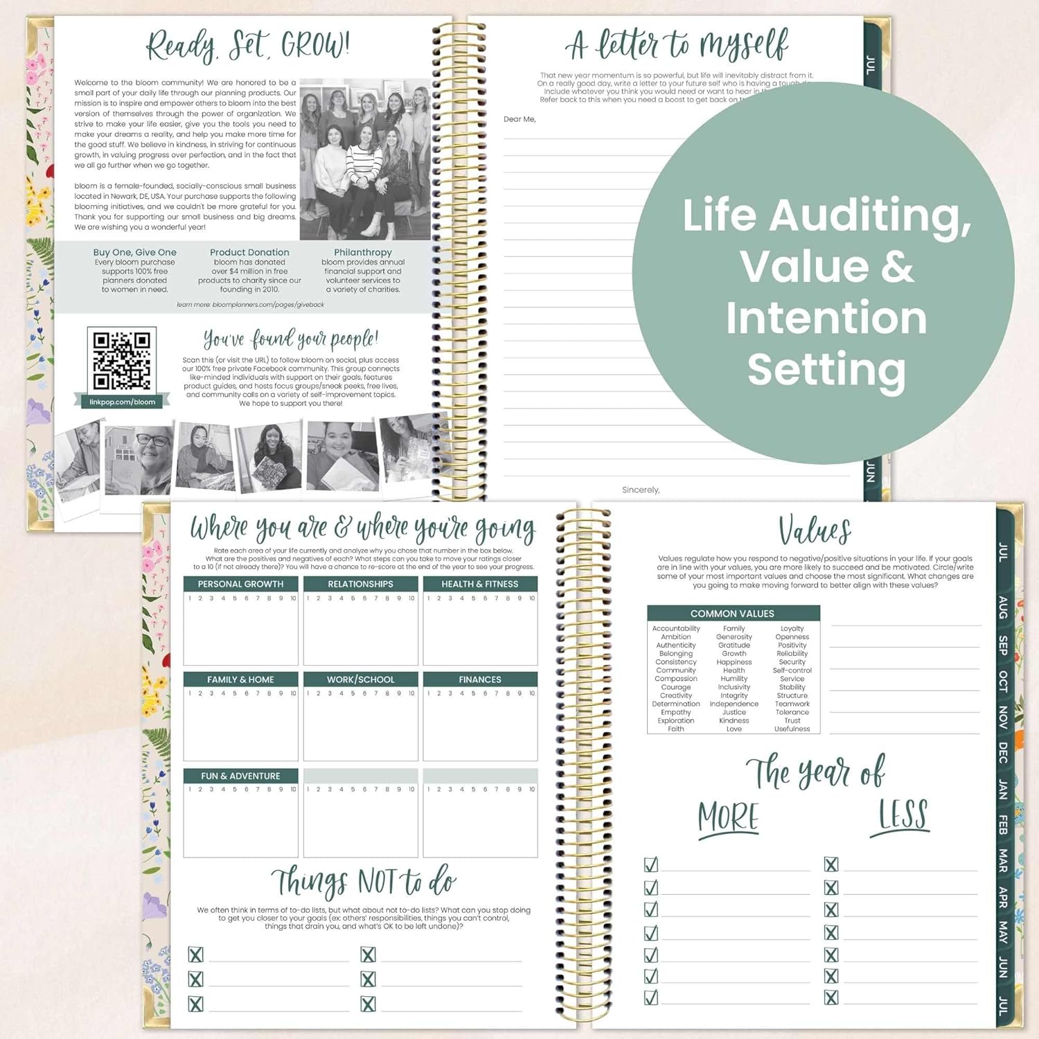 - More Than Just a Planner - bloom’s Vision Planner is packed with life-coaching worksheets like yearly goal setting, monthly vision boards, annual habit tracker, weekly scheduling template, monthly spending summary, and more.