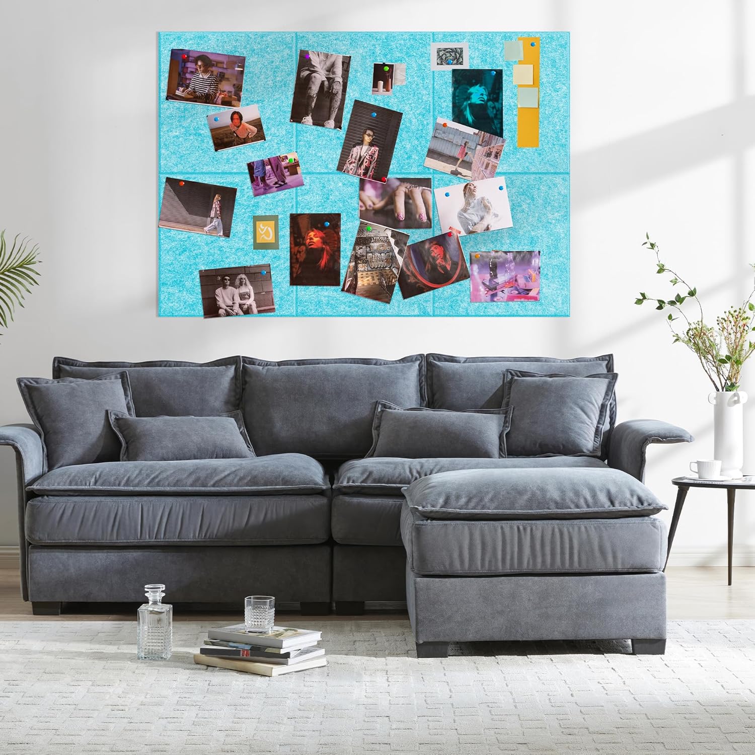 AKTOP Cork Board Bulletin Board 24"x36", 6 Pack Removable Felt Cork Board Tiles for Wall, Large Corkboard Notice Pin Board for Office, School & Home,24 Safe Adhesive Tabs, 20 Push Pins, Baby Blue