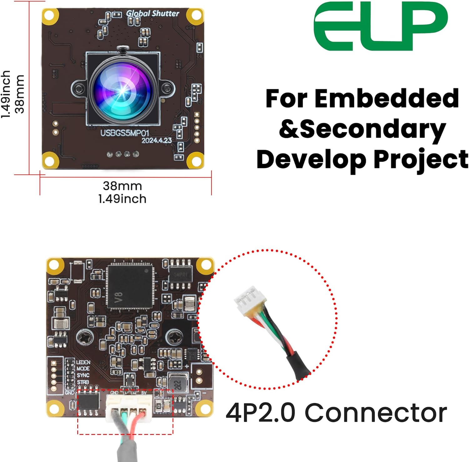 ELP 5MP Global Shutter 50fps USB Camera for Computer UVC USB2.0 Lightburn High Speed 60fps PC Web Camera Wide Angle for Live Streaming (100 Low Distortion Lens)
