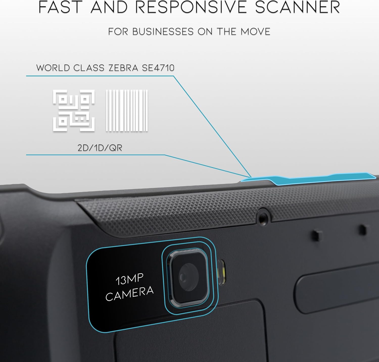 - Versatile Barcode Scanning: Equipped with the Zebra SE4710 2D/1D/QR Code Scanner for quick and precise barcode scanning.