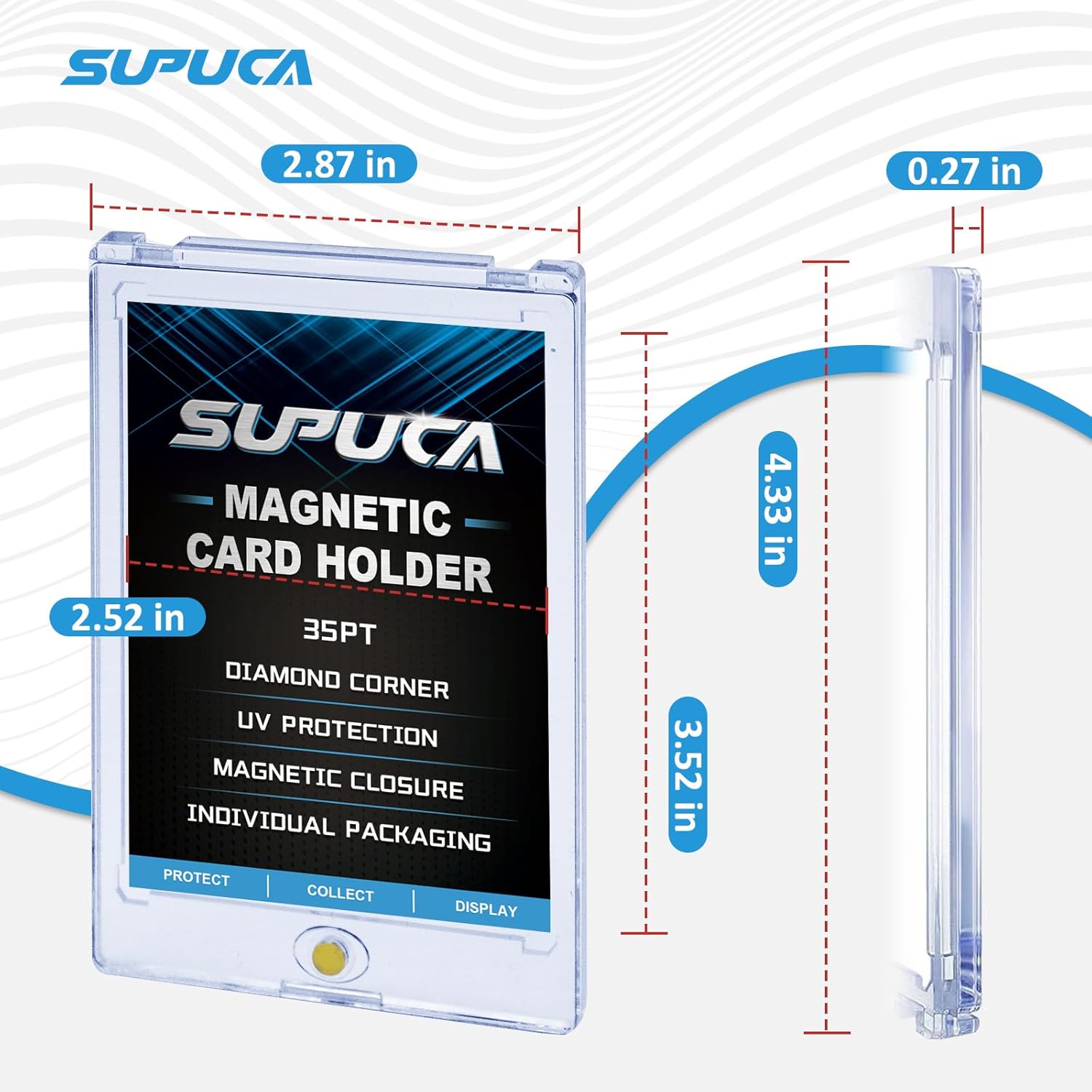 - Package Includes: 100 pack of 35pt magnetic card holders, measure 4.33"L x 2.87"W outside and 3.52"L x 2.52"W inside, sized to fit standard size (2.5" x 3.5") trading cards