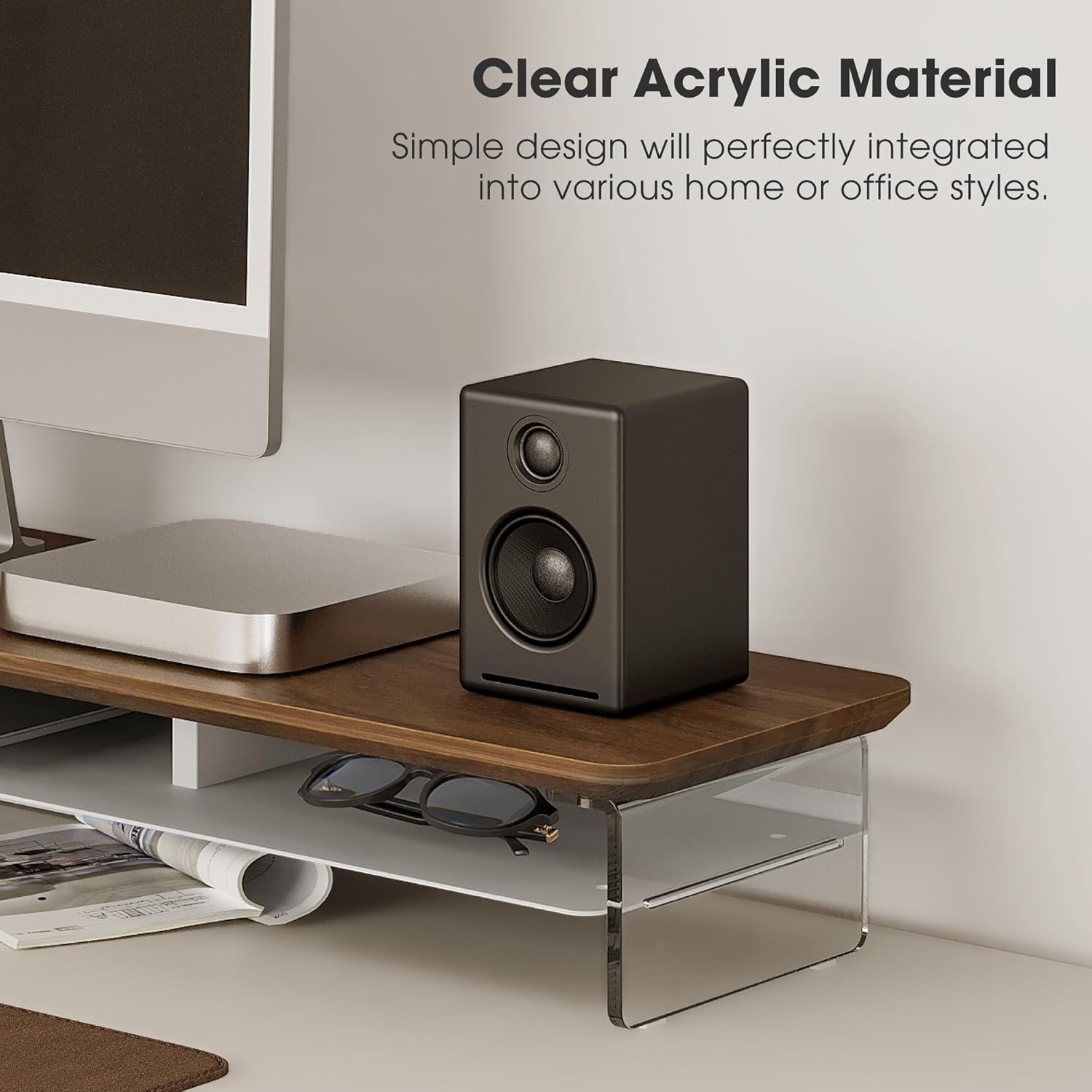 - 【Protect Your Cervical Spine & Eyes】: Acrylic monitor stand can raise your desktop by 4.7 inches to adjust to your eye level, reducing pressure on your neck and eyes.