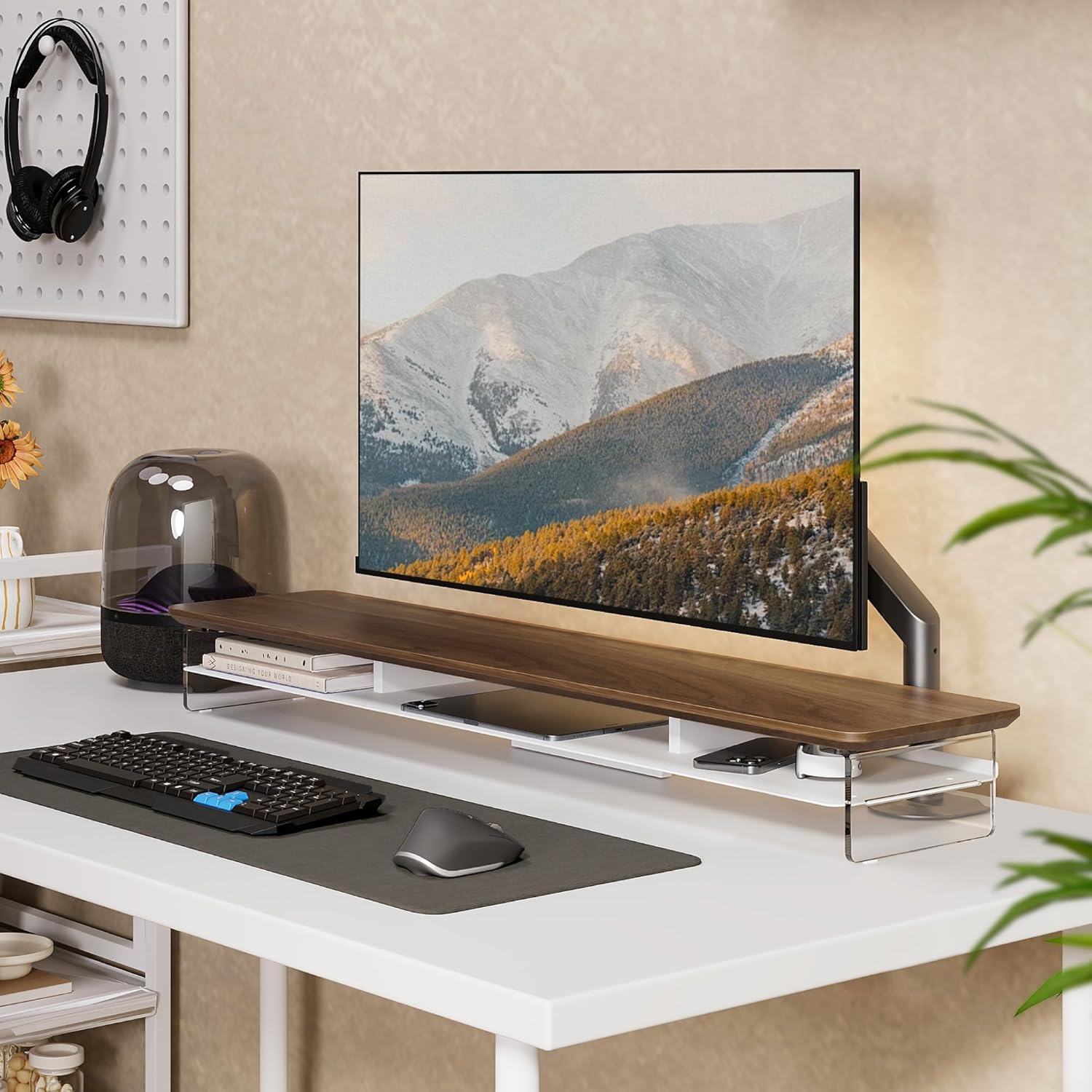- 【Aesthetic Space】: Fenge acrylic dual monitor stand is a suspended space design, not only adding an artistic flair, but also making your workspace more modern and innovative.