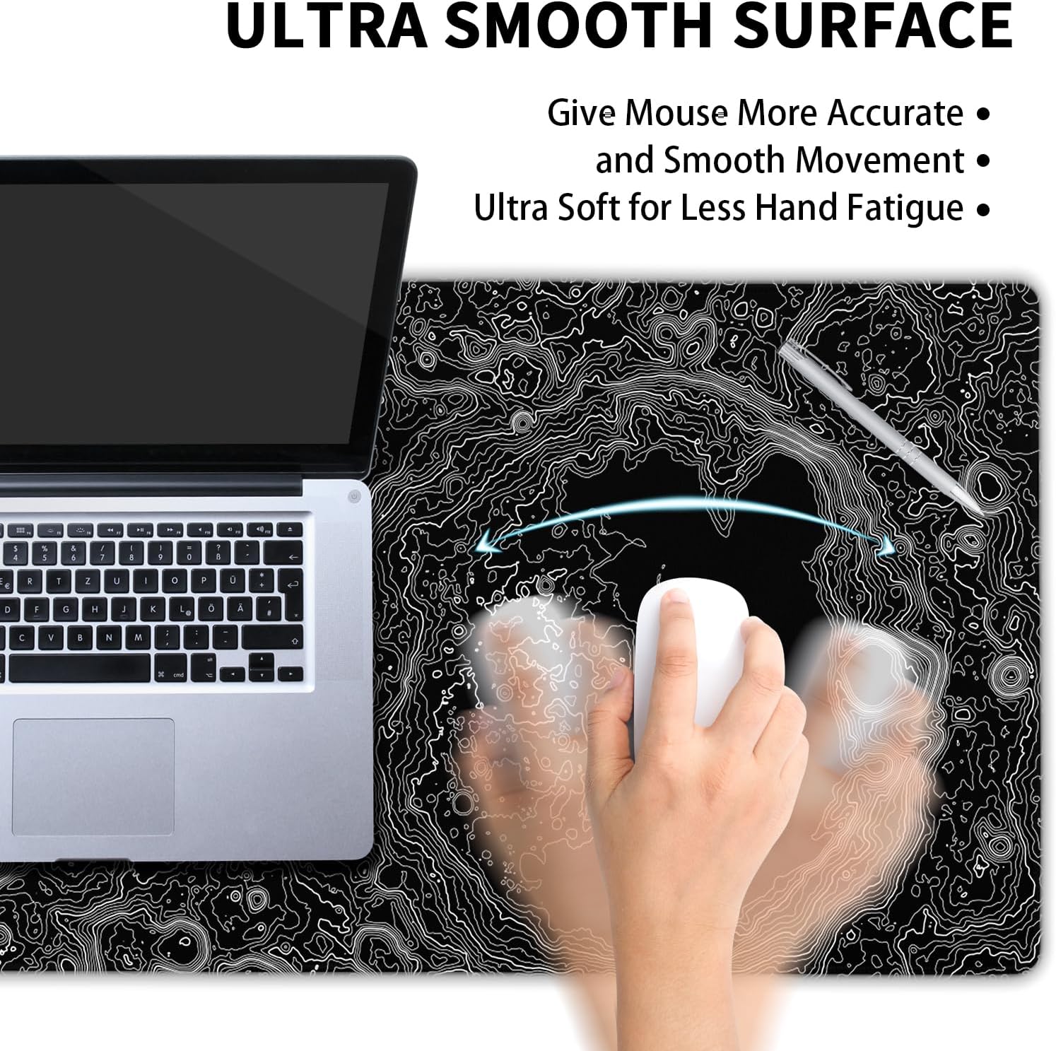 - ★【Superior Control Surface】:Black white topo lines computer large mouse pad designed with superfine fiber braided Material,smooth surface will provide you with frustration-free mouse movement.The performance-tuned keyboard pad greatly enhances control accuracy and speed in working or gaming.