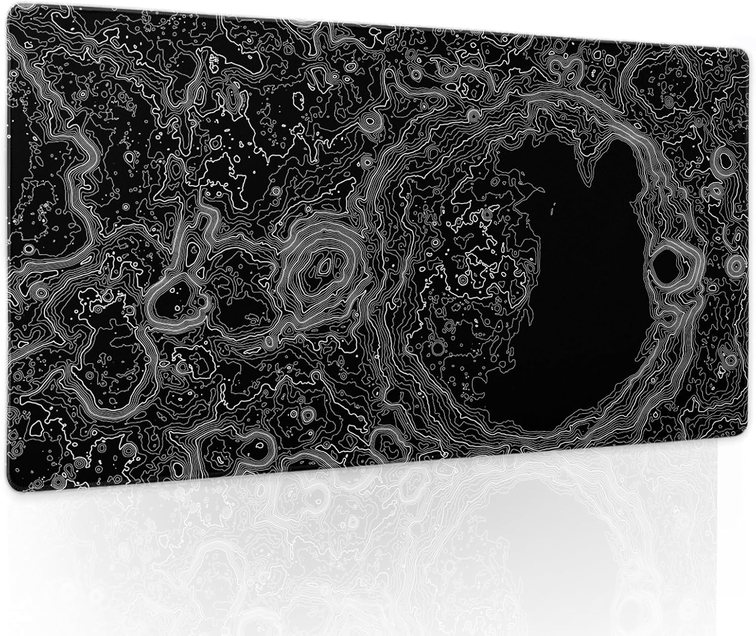 Black Whtie Topographic Gaming Mouse Pad XL Topo Moon Relief Map Extended Large Mat Mousepad Desk Pad Non-Slip Rubber Base Stitched Edge Long Keyboard Playmat for Desk Computer,24x14 Inch