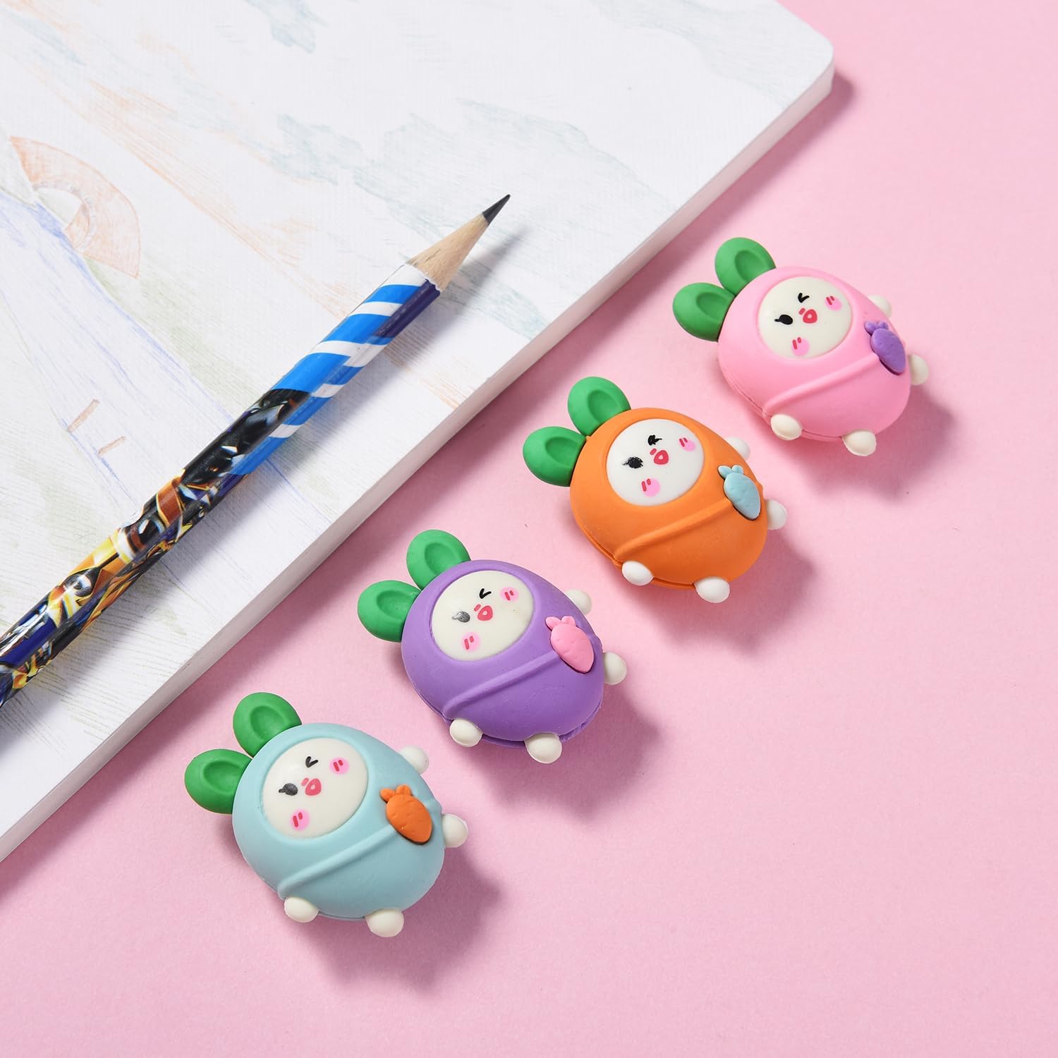 20 Pack Carrot Erasers for Kids, 3D Erasers for Boys Girls, Fun Take Aapart Erasers for School Supplies Prize Gifts Party Favors
