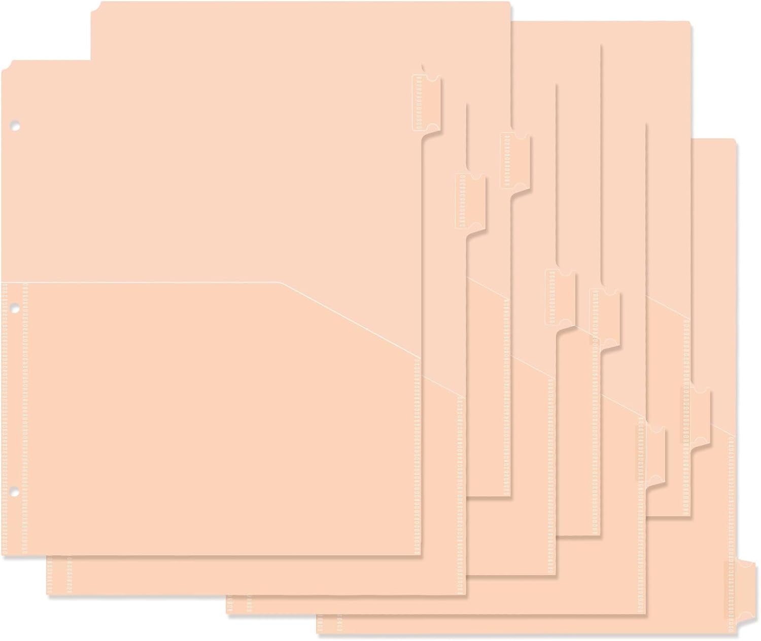 - 【Fits 3 RIng Binders】3 Holes punched, fit in standard 3 ring binders. Our Plastic Pocket Dividers are measured 9.3 X 11.2 inches, providing the maximum coverage for your letter-sized paper. There are a total of 8 dividers for 3 ring binder with pockets in the package.