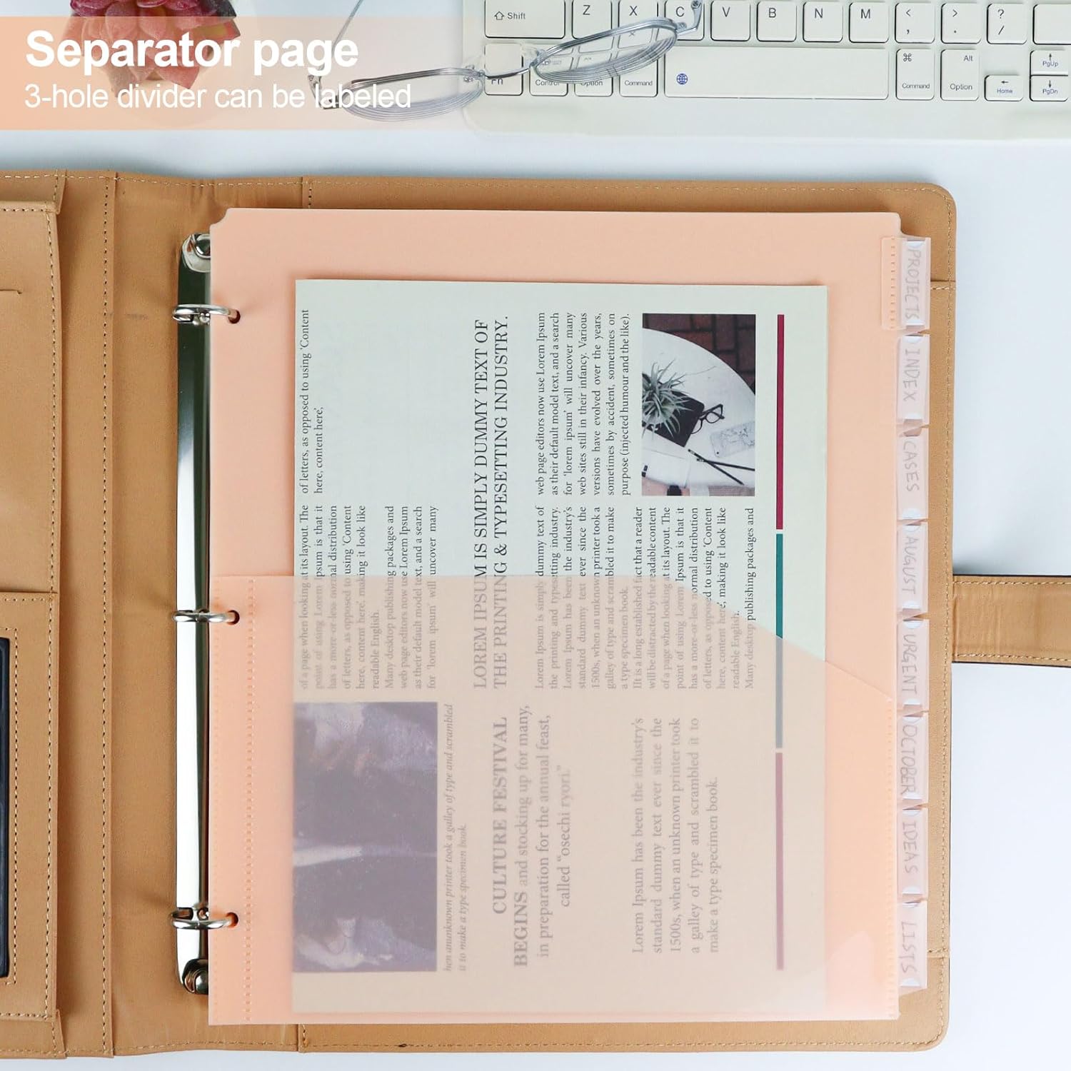 - 【Clear Front Inclined Pocket】Each plastic dividers features an inclined front pocket, are the perfect way to store loose papers in your 3-ring binder divider, and the semitransparent design also offer clear and easy browsing.