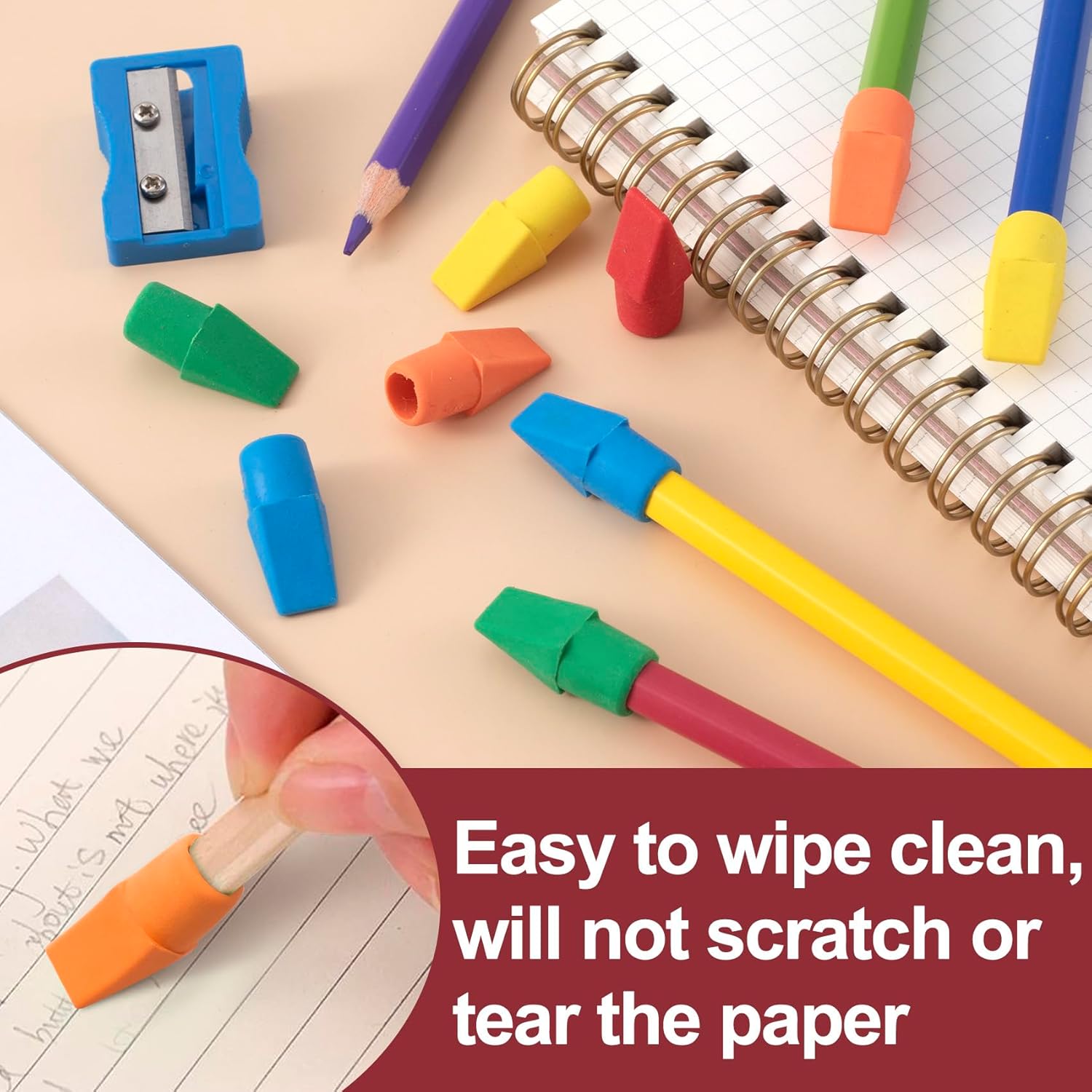 - Well Made: These cute pencil cap erasers is made of high quality TPR, confortable to touch, easy to remove pencil marks without no scratching or tearing of paper.