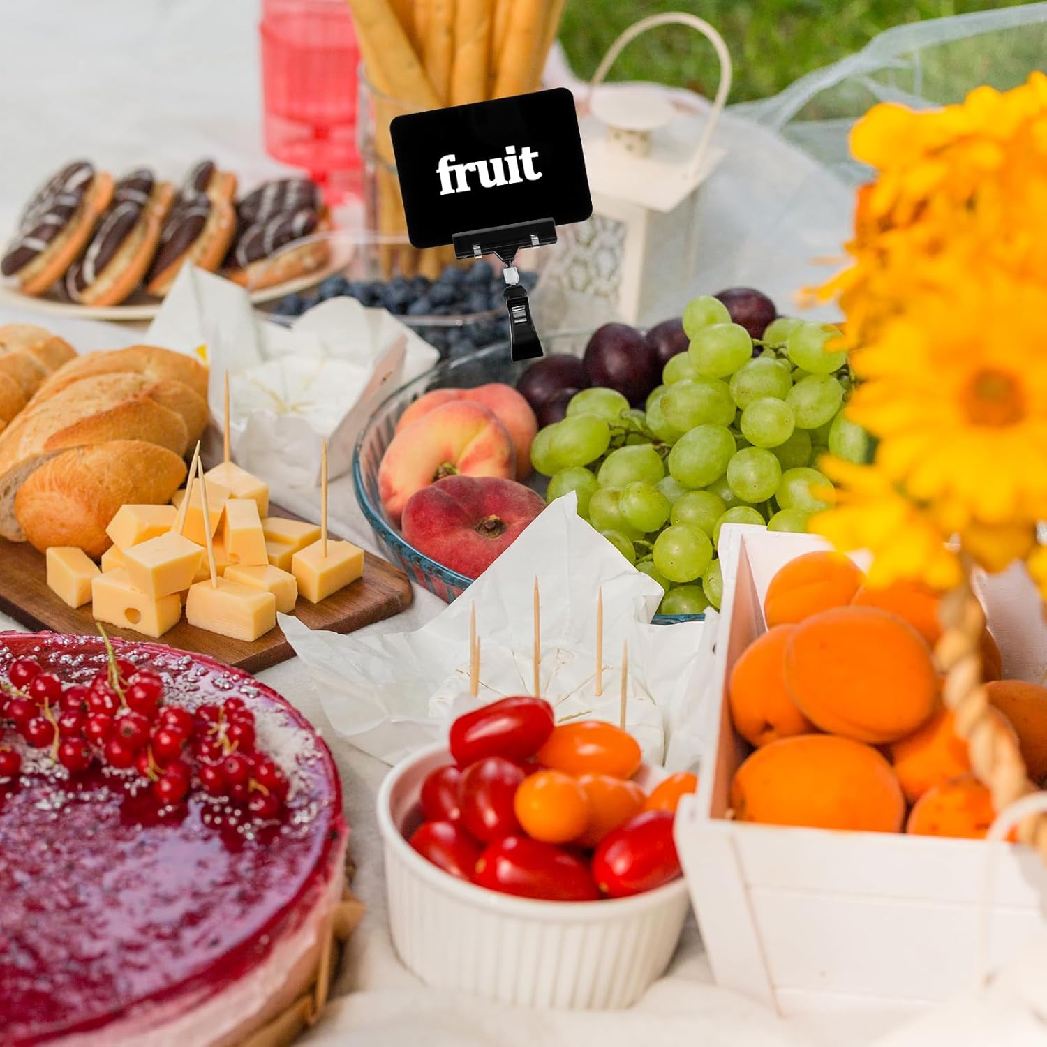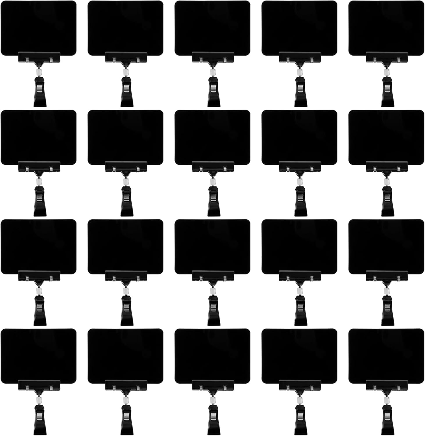 20Pack Mini Chalkboard Signs with Rotatable Clip, Erasable Double Sided Blackboard Clips Plastic Merchandise Sign Display Clip Holder for Food, Store Signs Displays (Black)