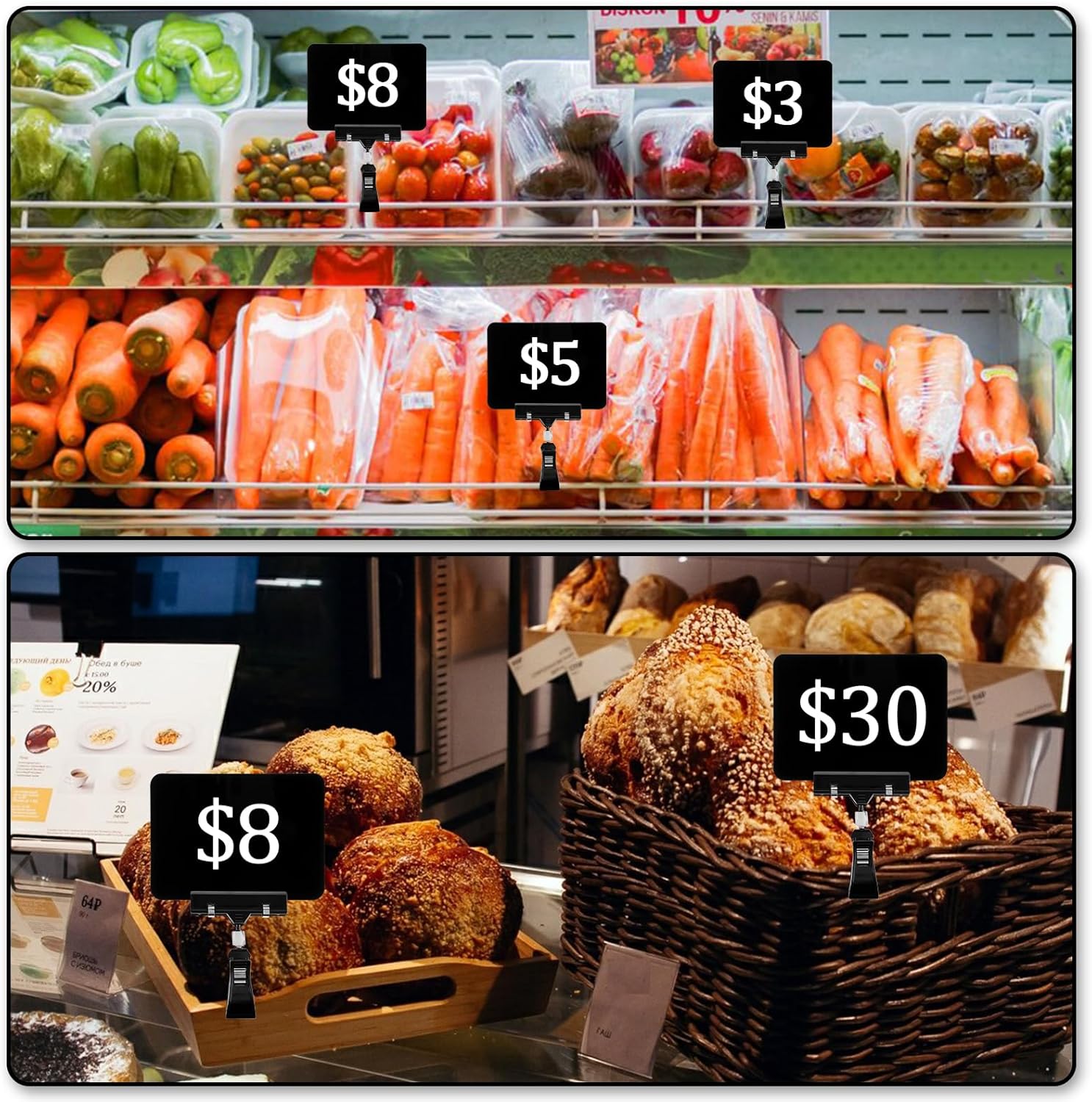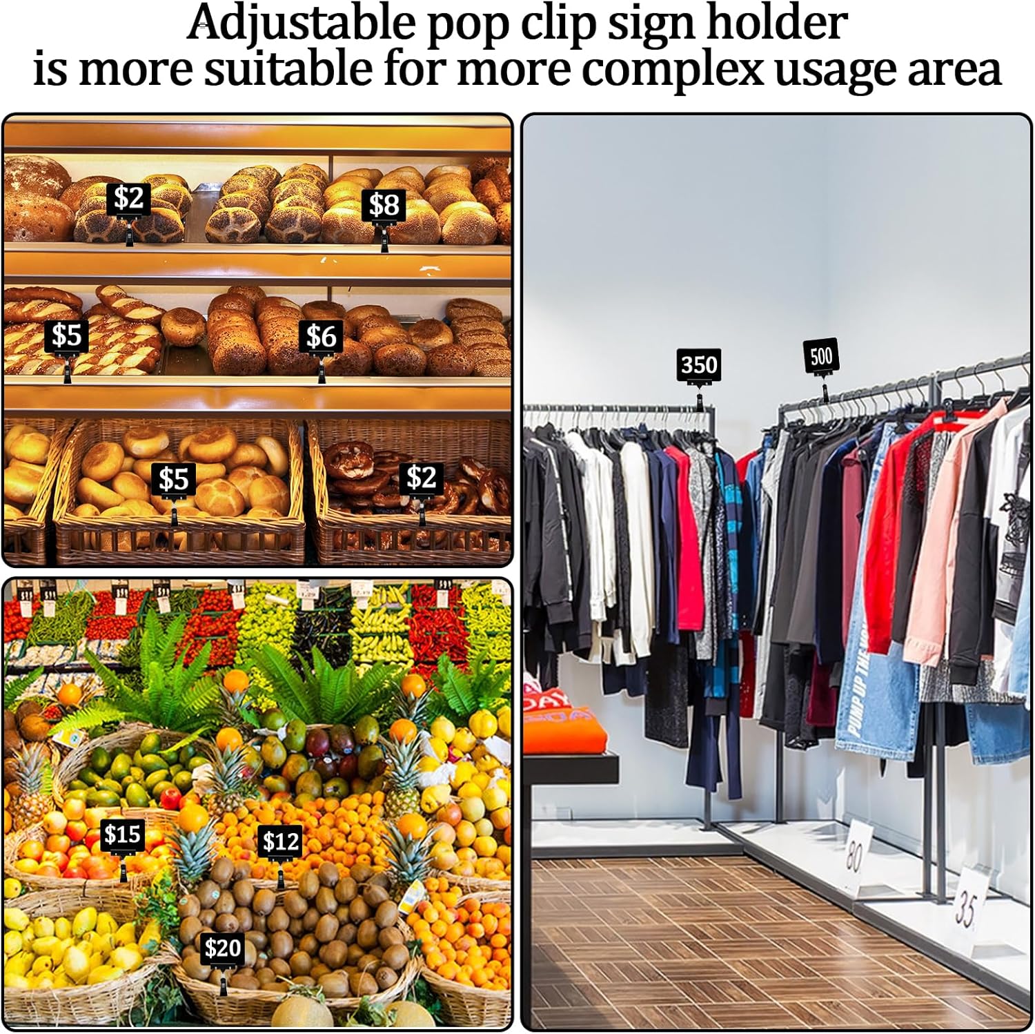 - Wide Application: the clip on sign holder is suitable for places such as stores, offices, supermarkets, shopping malls, parties and exhibitions for advertising, price tags, display notes, reminders, etc., which enhances the visual effect and is easy to organize, bringing you many conveniences