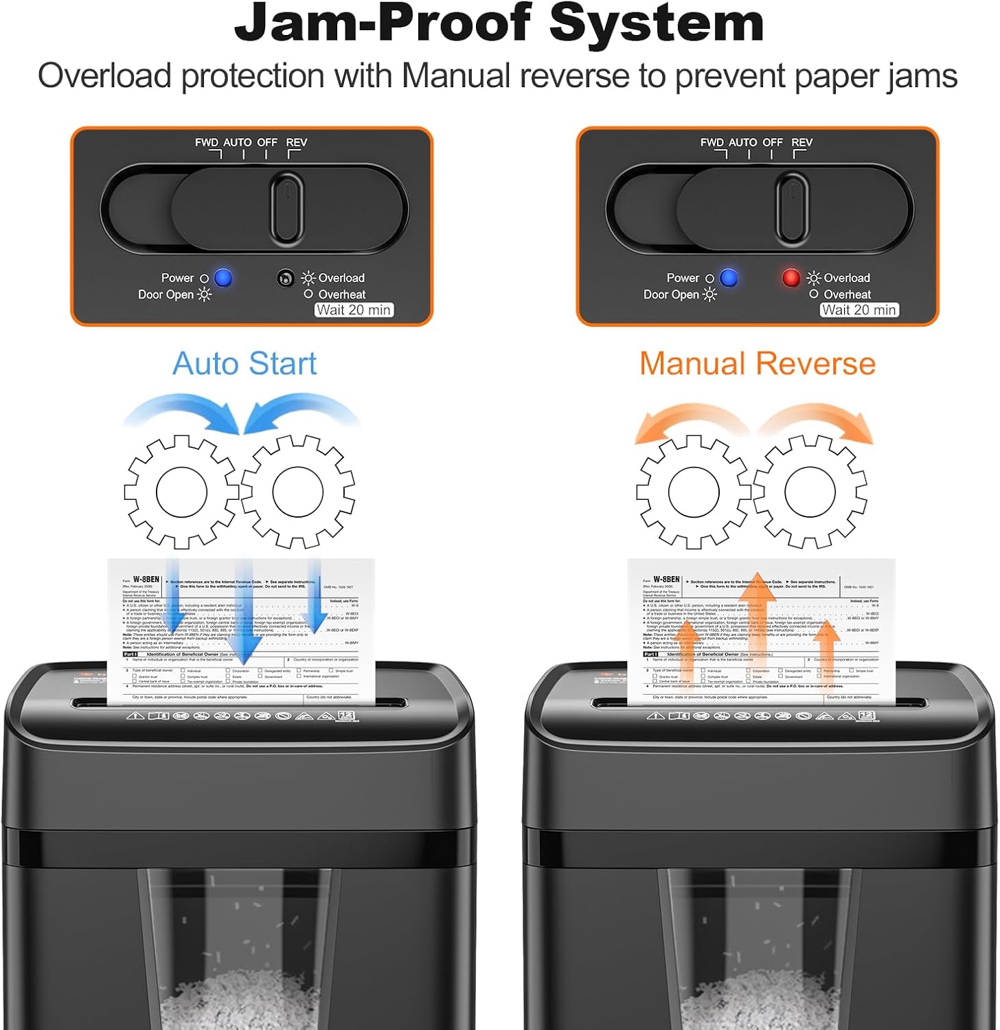 - Overload/Overload/Door Open/Power with LED indicator lights to help users operate the heavy duty shredder correctly