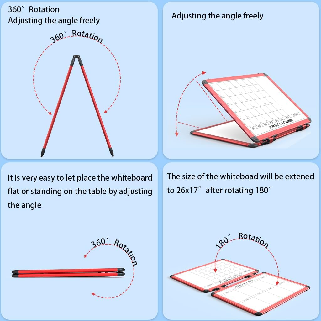 4 Sided Foldable Whiteboards Calendar, 17"x13" Desktop Whiteboard, Integrating with Monthly and Weekly Planner, Multi-Functional Whiteboard Suitable for Home, School and Office.