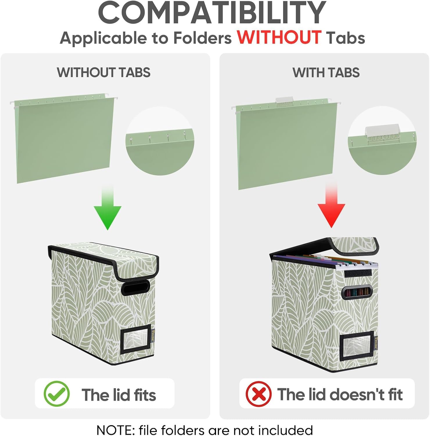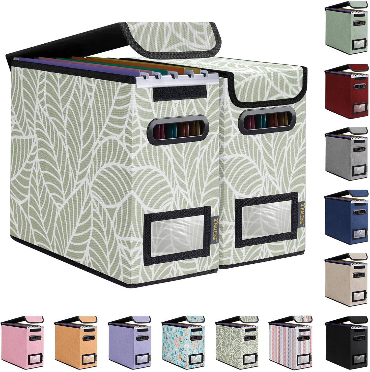 BALEINE File Organizer Box with Lid, Collapsible File Folder Organizer with Plastic Slide, Hanging File Folder Box for Office Document Storage (2 Pack, Antique Foliage, S)