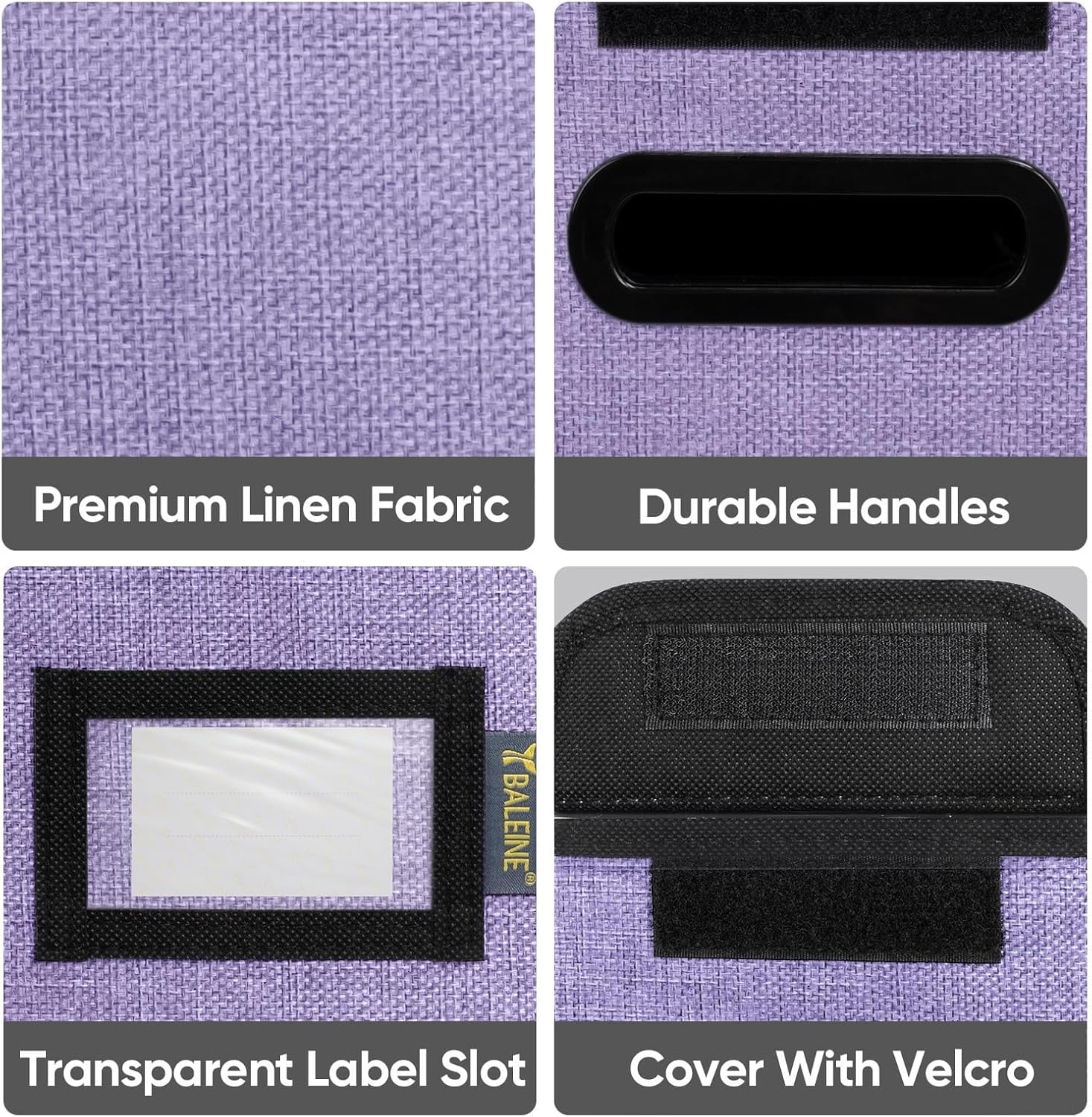 BALEINE File Organizer Box with Lid, Collapsible File Folder Organizer with Plastic Slide, Hanging File Folder Box for Office Document Storage (2 Pack, Purple, S)
