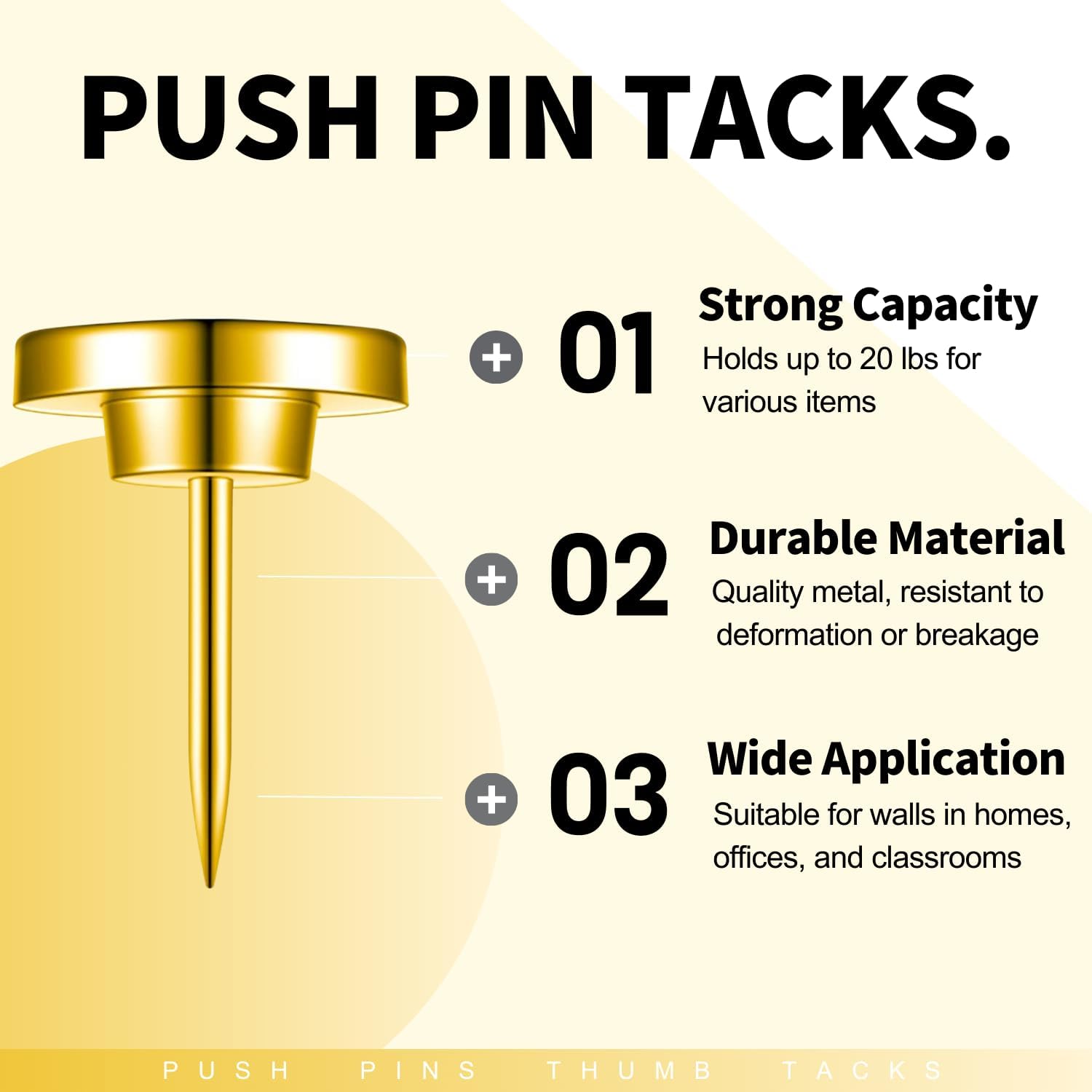 30 PCS Metal Gold Push Pins for Wall Clear Thumb Tacks for Walls Flat thumbtacks Push pin for Bulletin Board Shadow Box Display Thumbtack for Cork Board (Gold)