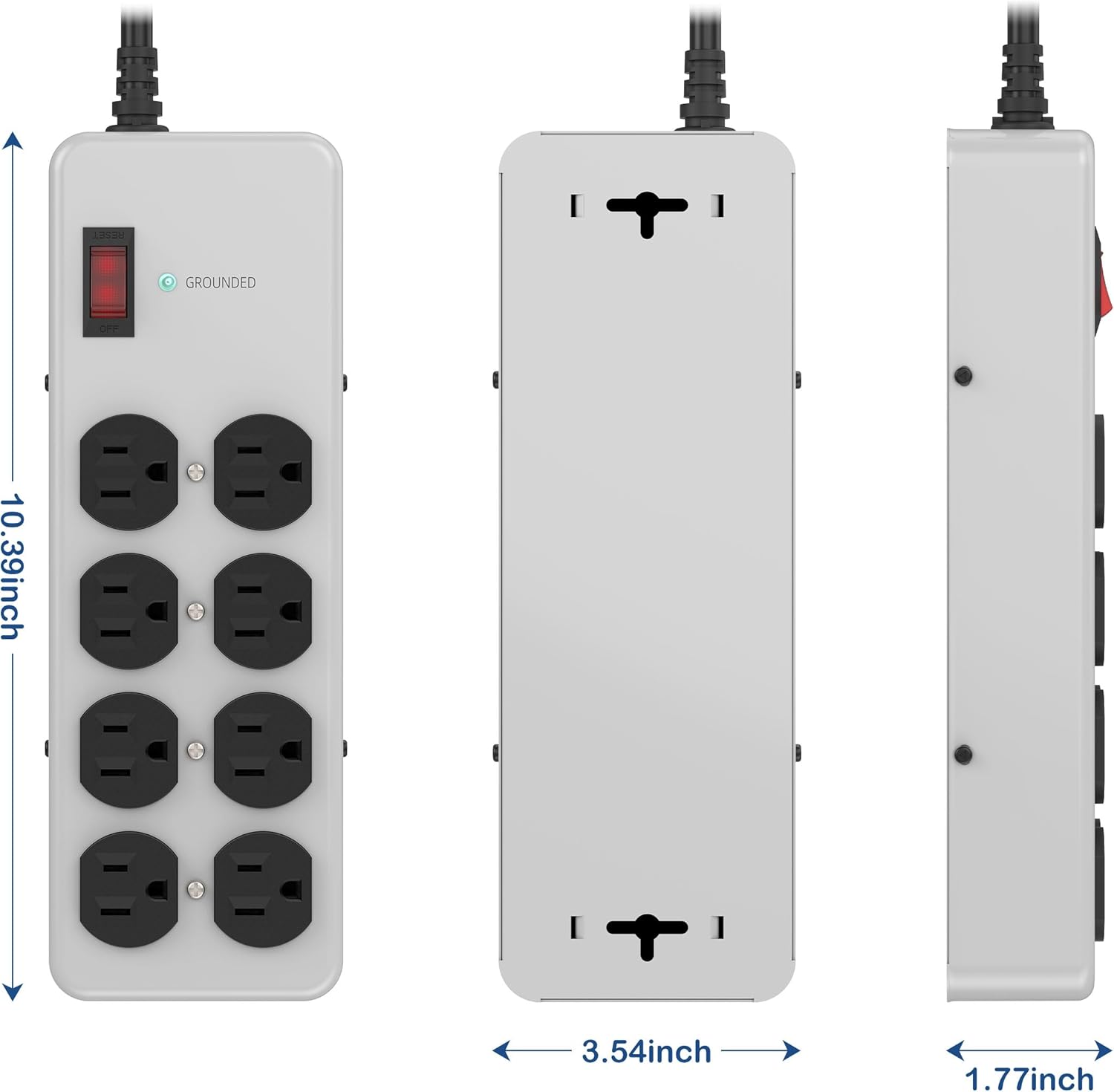 Heavy Duty Power Strip,Industrial Heavy Metal Case Surge Protector,8 AC Outlets,15Amp,2700 Joules,Protected' Indicator,14 Gauge Cord (Grey, 10FT Length)