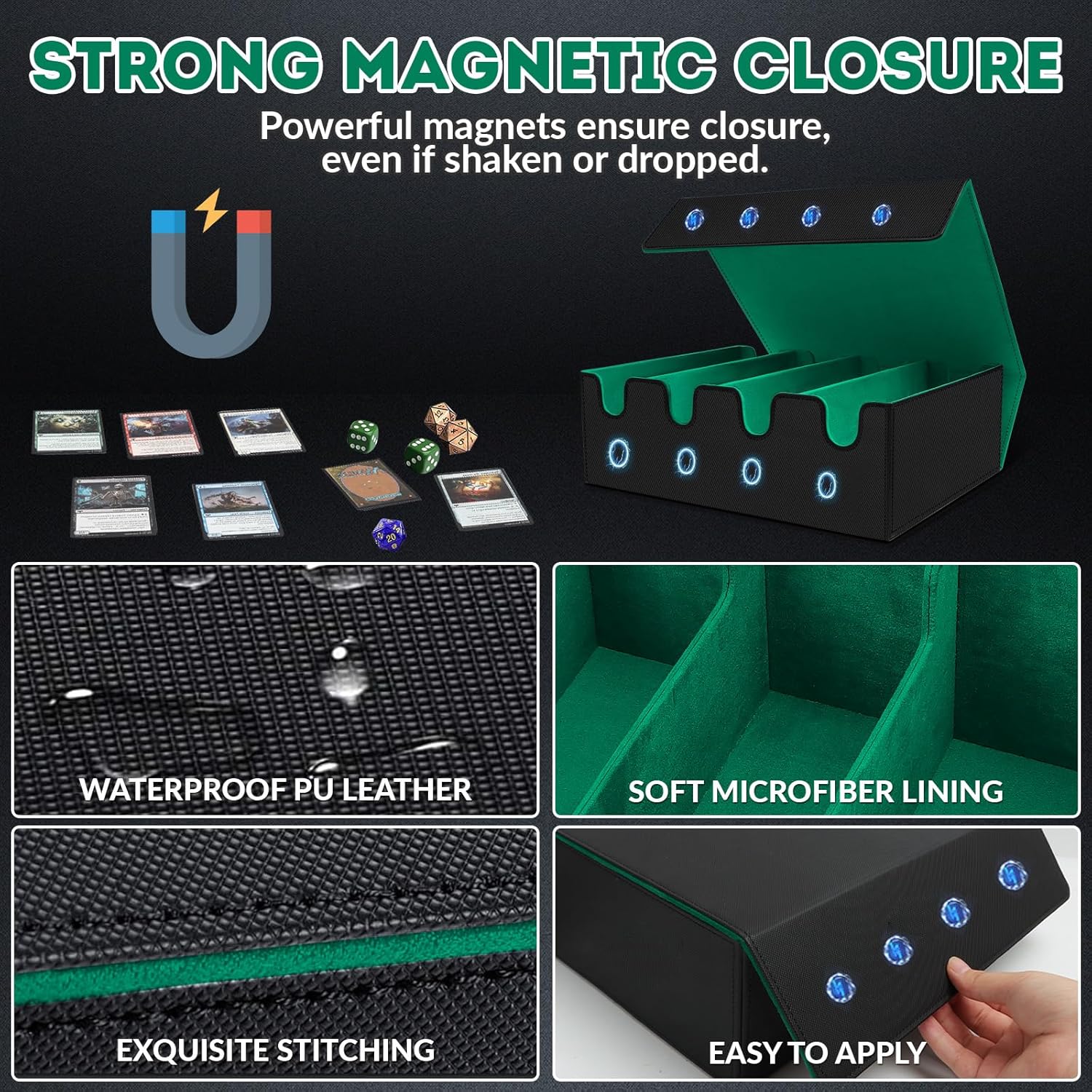 - ๐๐๐ ๐ง๐๐ญ๐ข๐ ๐๐๐ซ๐ ๐๐๐ฌ๐ - This deck card case is equipped with powerful magnetic closures. When the lid is closed, it firmly adheres to the box, easily withstanding various shaking and movement scenarios. This effectively prevents the box from accidentally opening and spilling the cards inside.