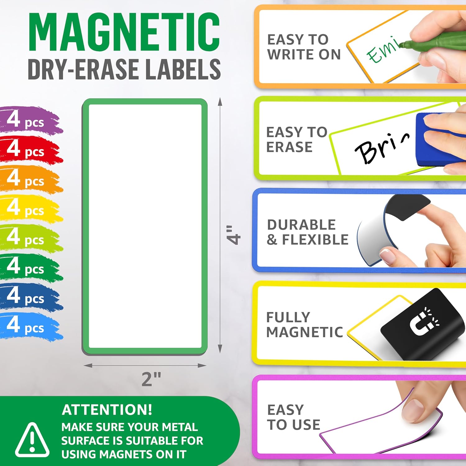 - Package Includes - 32 pcs of dry erase labels magnetic 2x4 in, great for identifying various items around classroom, house, office, or store, labeling, and sorting.